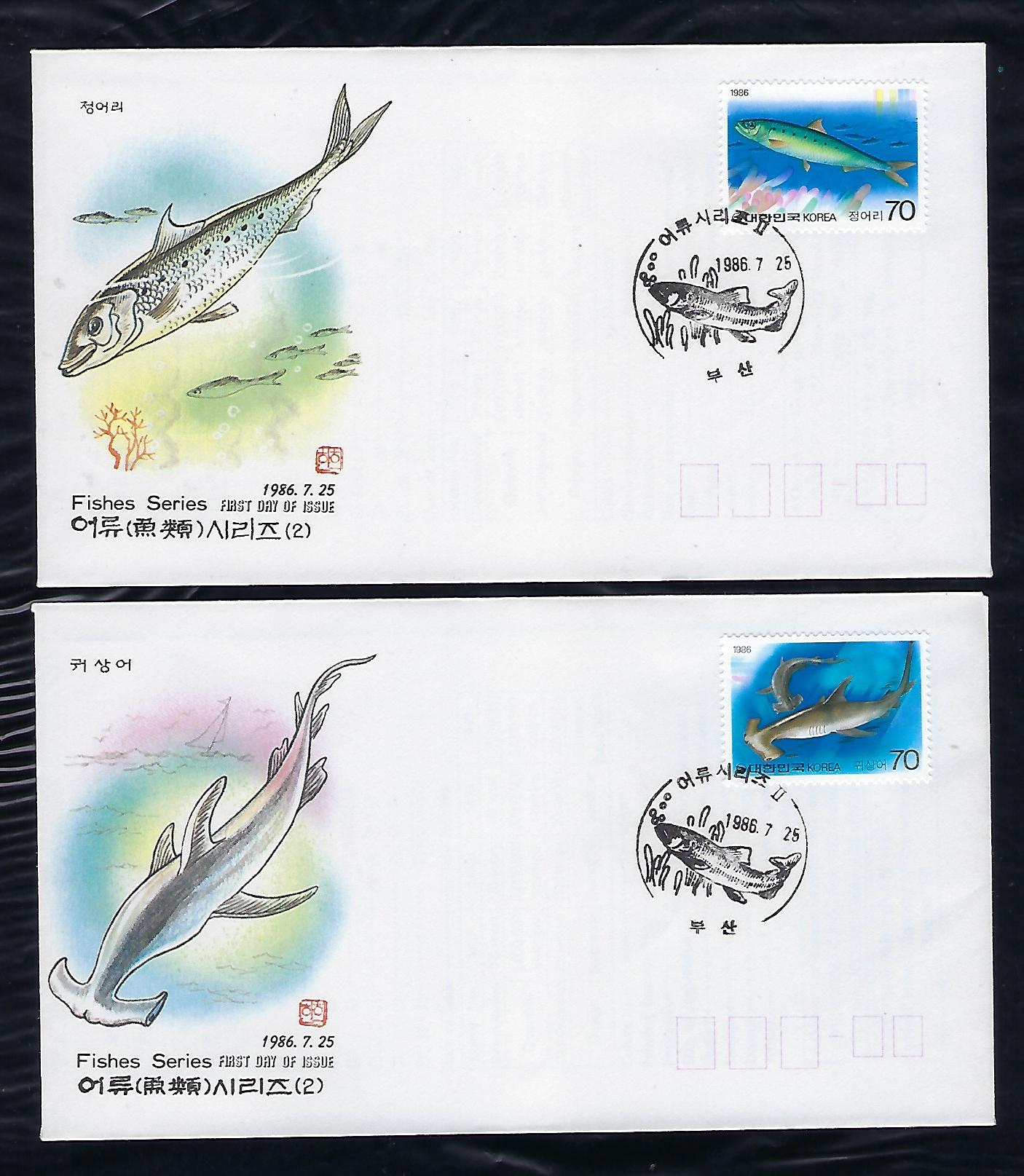 1986년 어류 시리즈 제 2집 우표 안내카드 포함 초일 봉투(FDC) 4완
