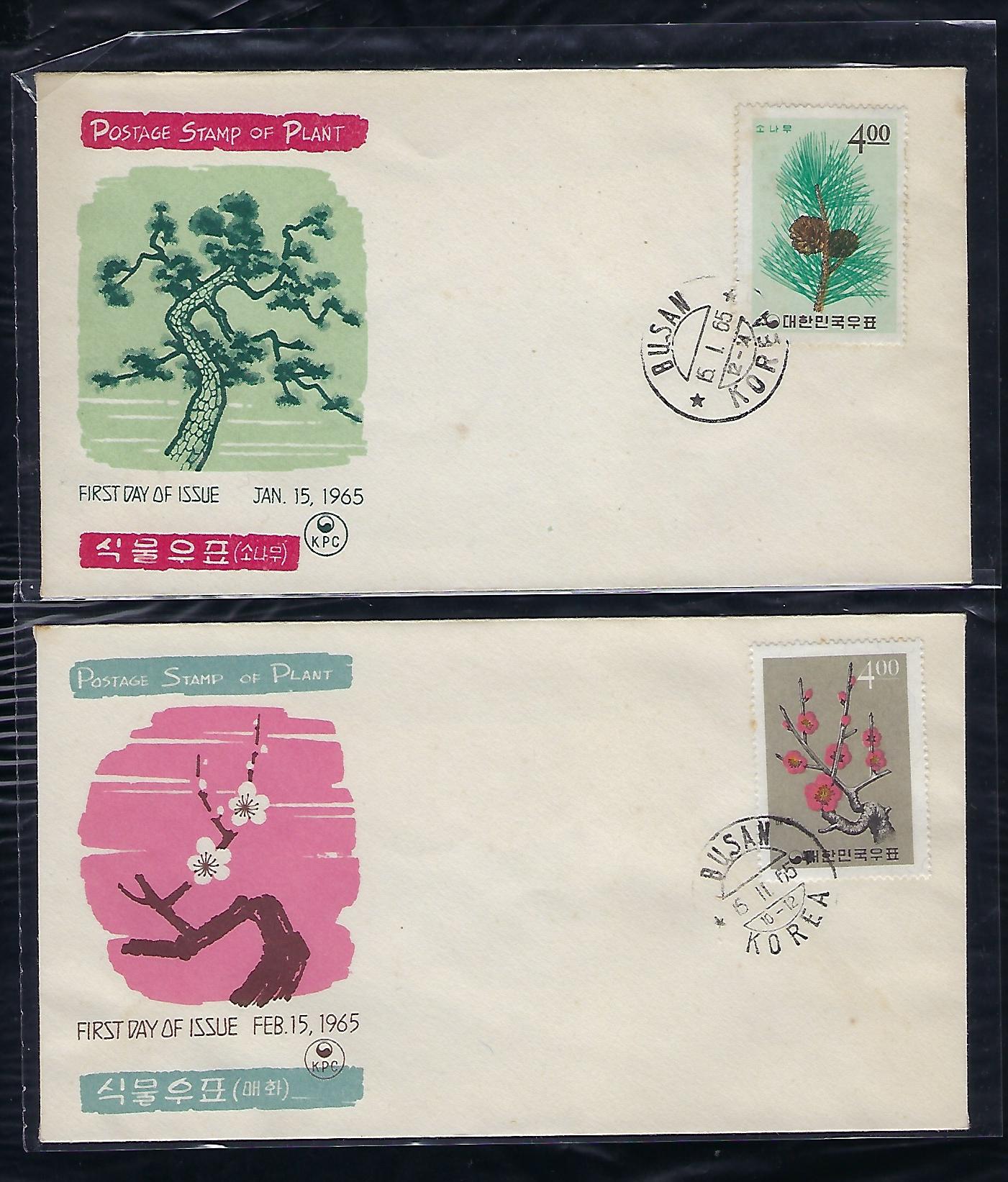 1965년 식물 시리즈 1집 소나무 매화 2완 초일봉투 (FDC)