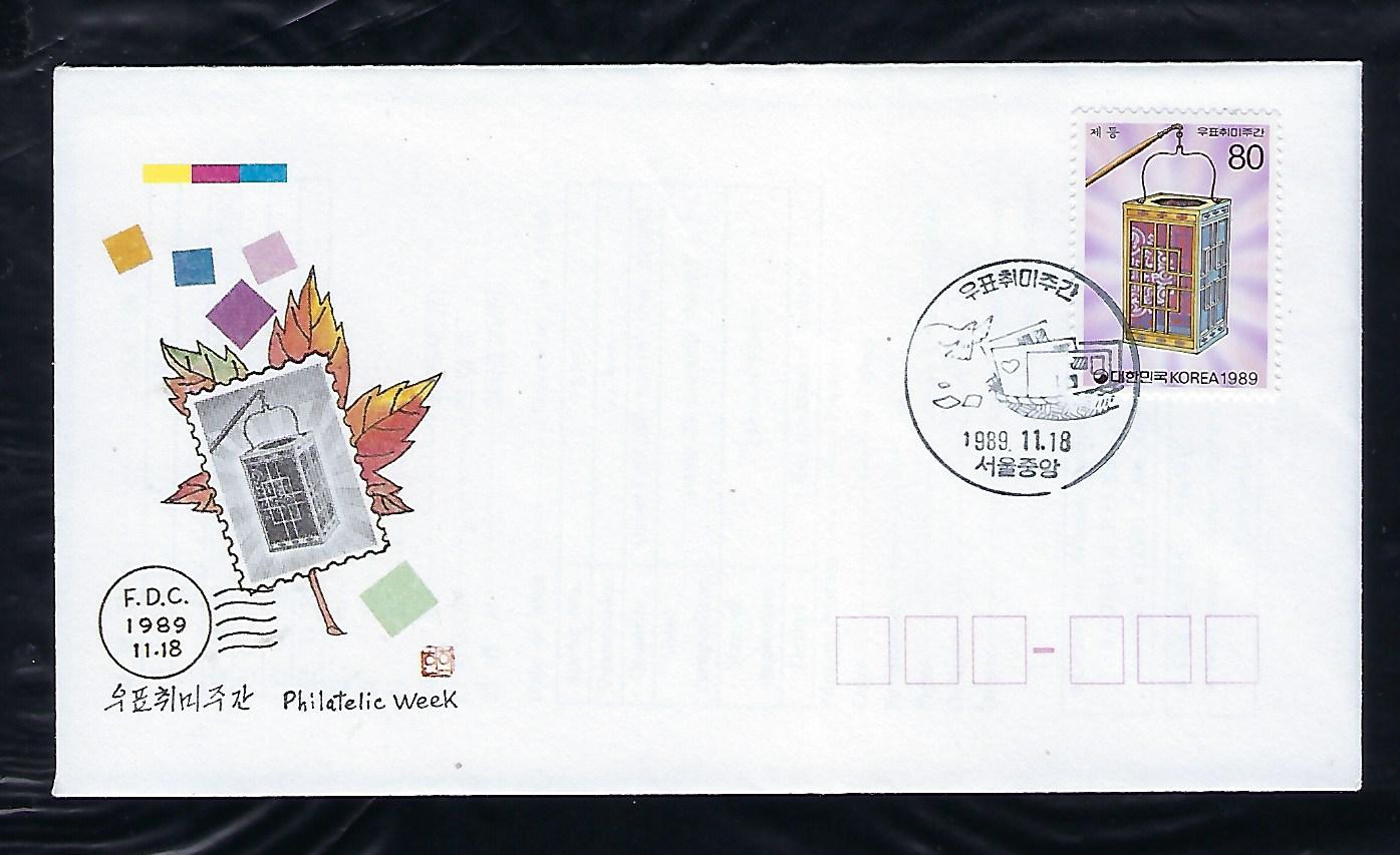 1989년 우표취미주간 안내 카드 포함 초일 봉투(FDC)