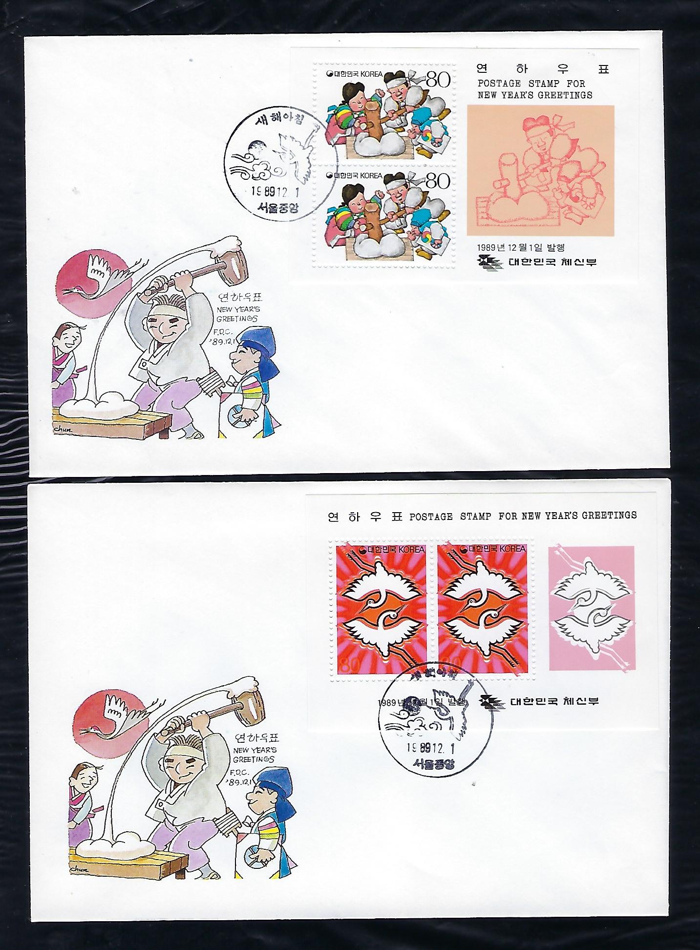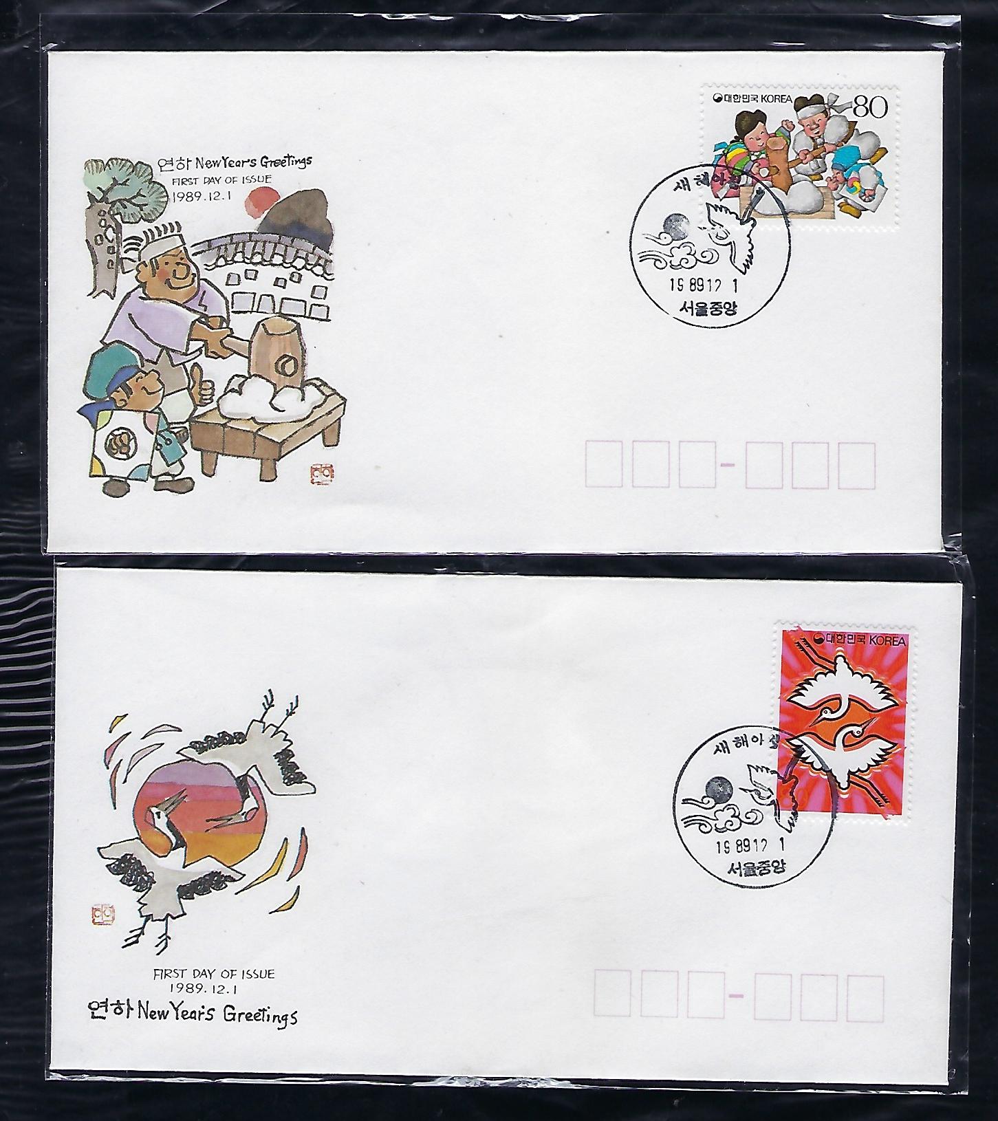 1989년 90년 용 연하 우표 시트 초일 봉투(FDC) 2완