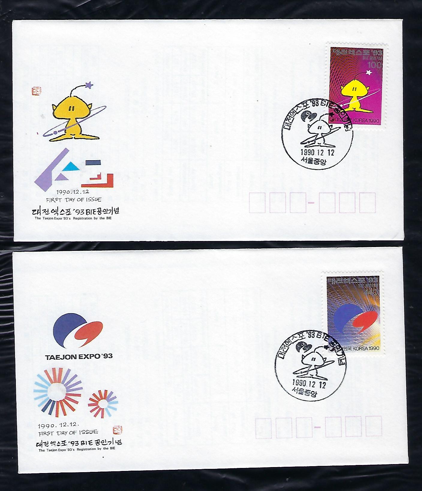 1990년 대전 엑스포`93제1집 우표 안내 카드 포함 초일 봉투(FDC) 2완