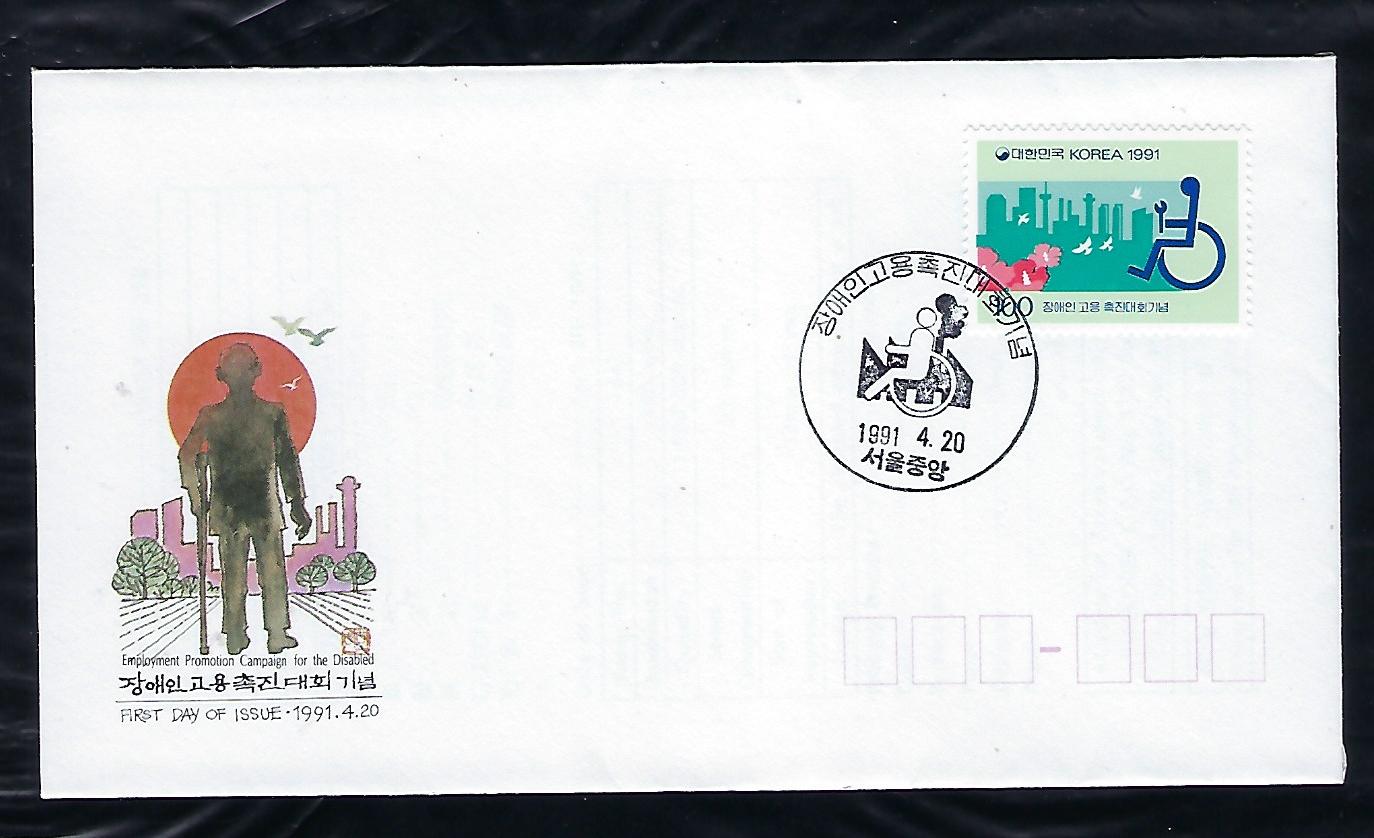 1991년 장애인 고용 촉진 대회 우표 안내 카드 포함 초일 봉투(FDC)