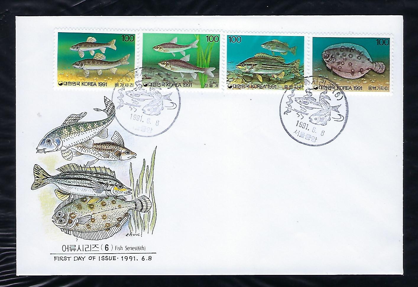 1990년 어류 시리즈 6집 4완 우표 초일 봉투(FDC)