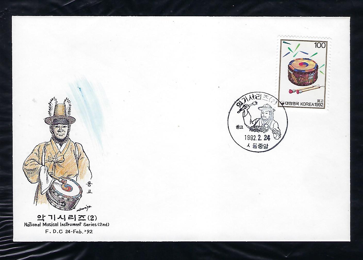 1992년 악기 시리즈 2 집 용고 우표 초일 봉투(FDC)