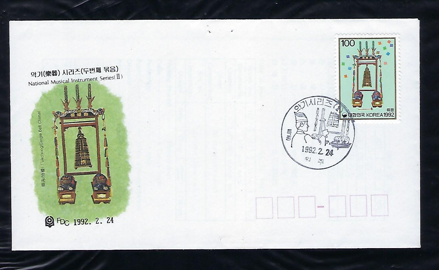 1992년 악기 시리즈 2 집 특종 우표 초일 봉투(FDC)