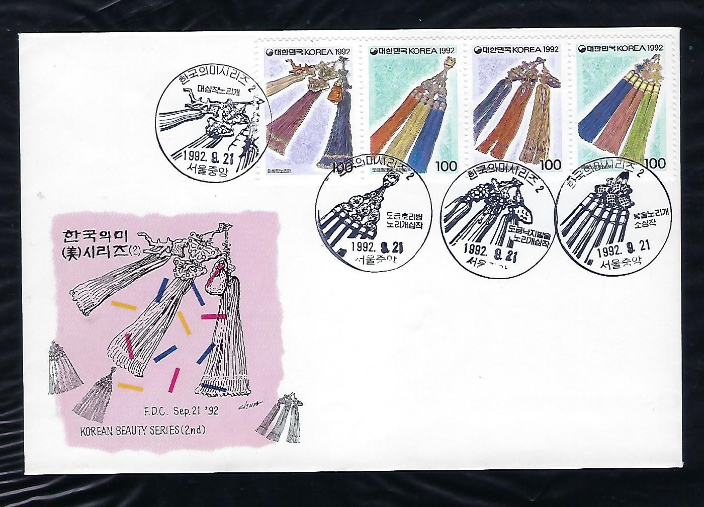 1992년 한국의 미 시리즈 2 집 4종 연쇄 우표 초일 봉투(FDC)