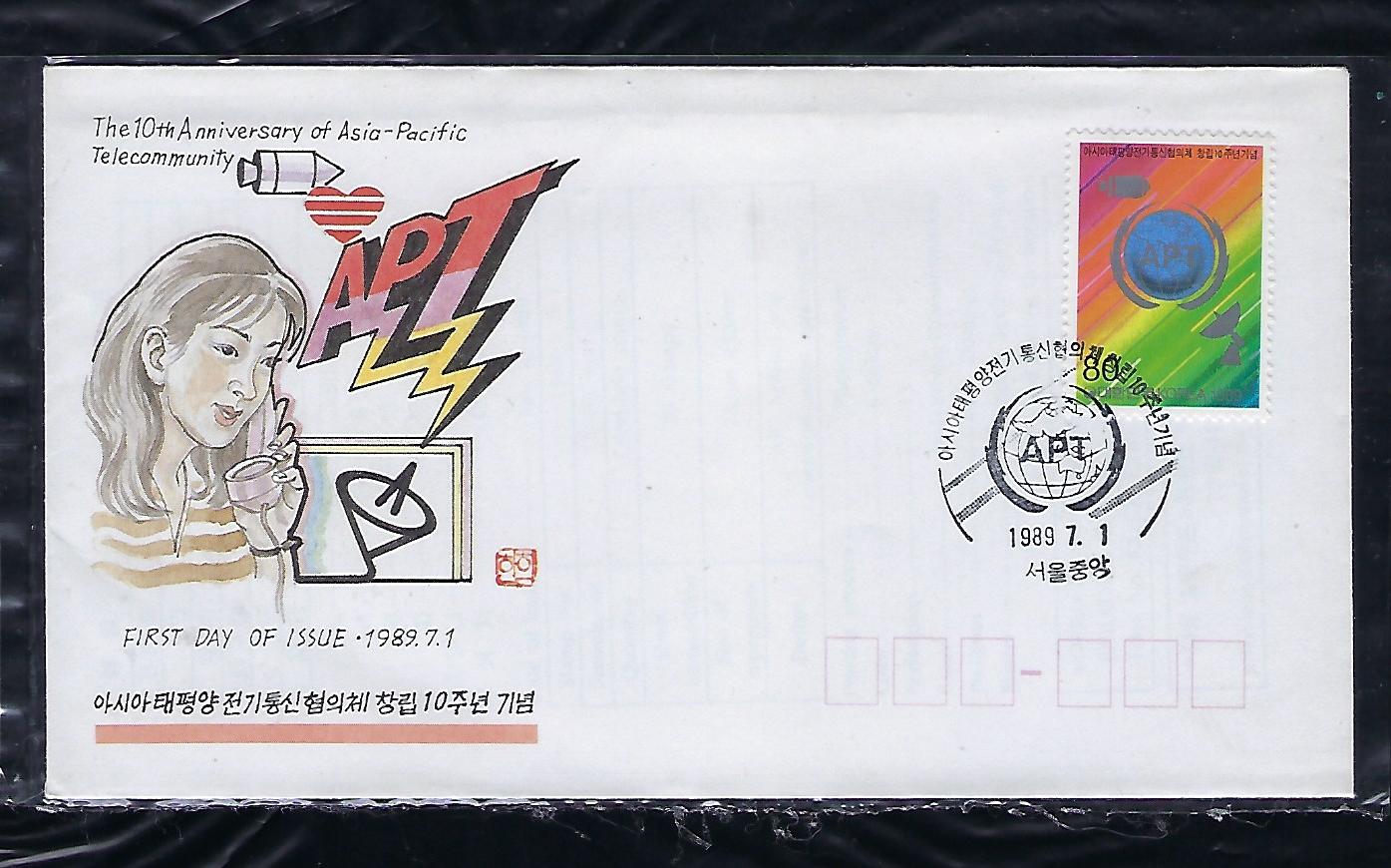 1989년 APT 창립 10주년 우표 안내 카드 포함 초일 봉투(FDC)