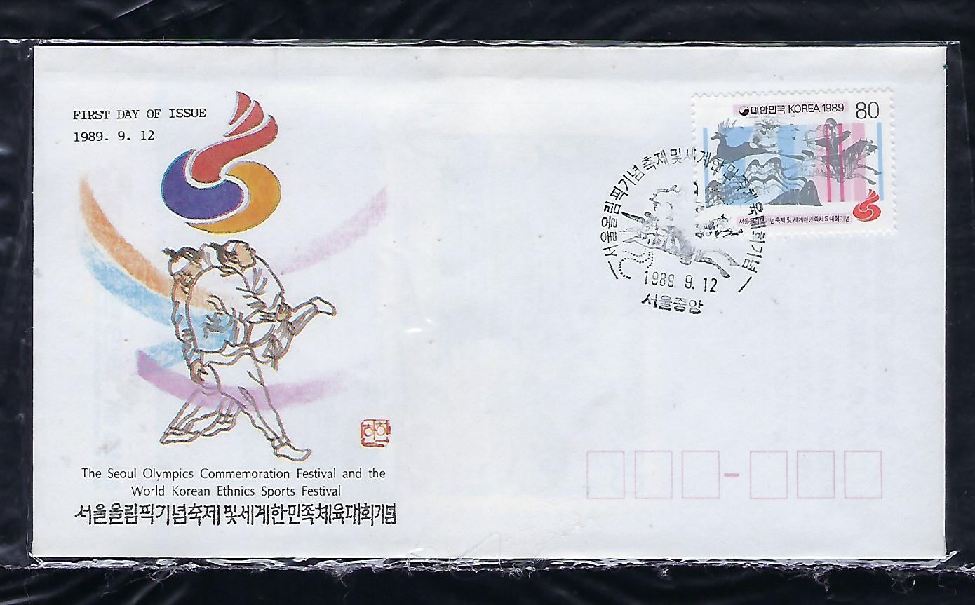 1989년 서울 올림픽 기념 축제 및 세계 한민족 체육 대회 우표 안내 카드 포함 초일 봉투(FDC)
