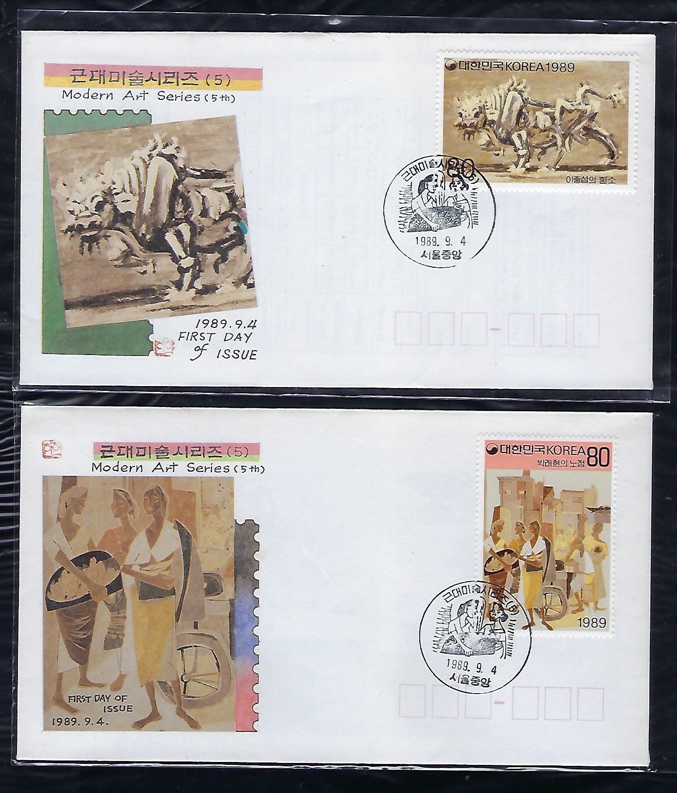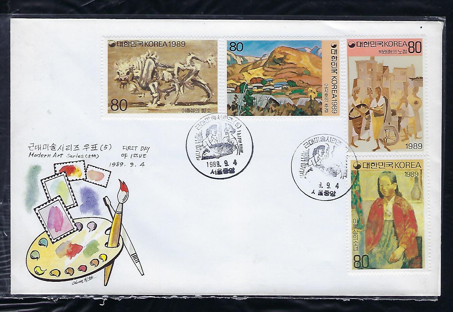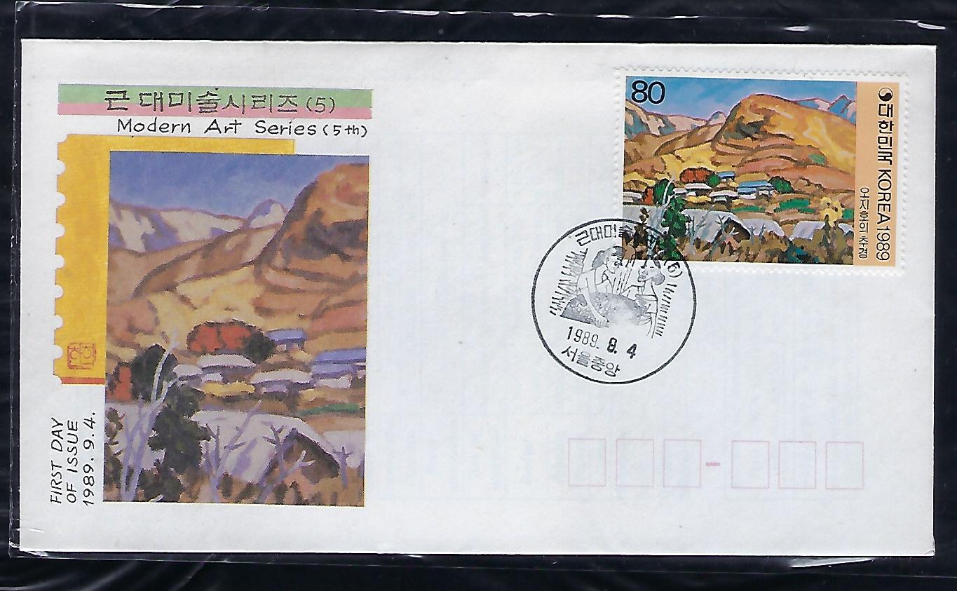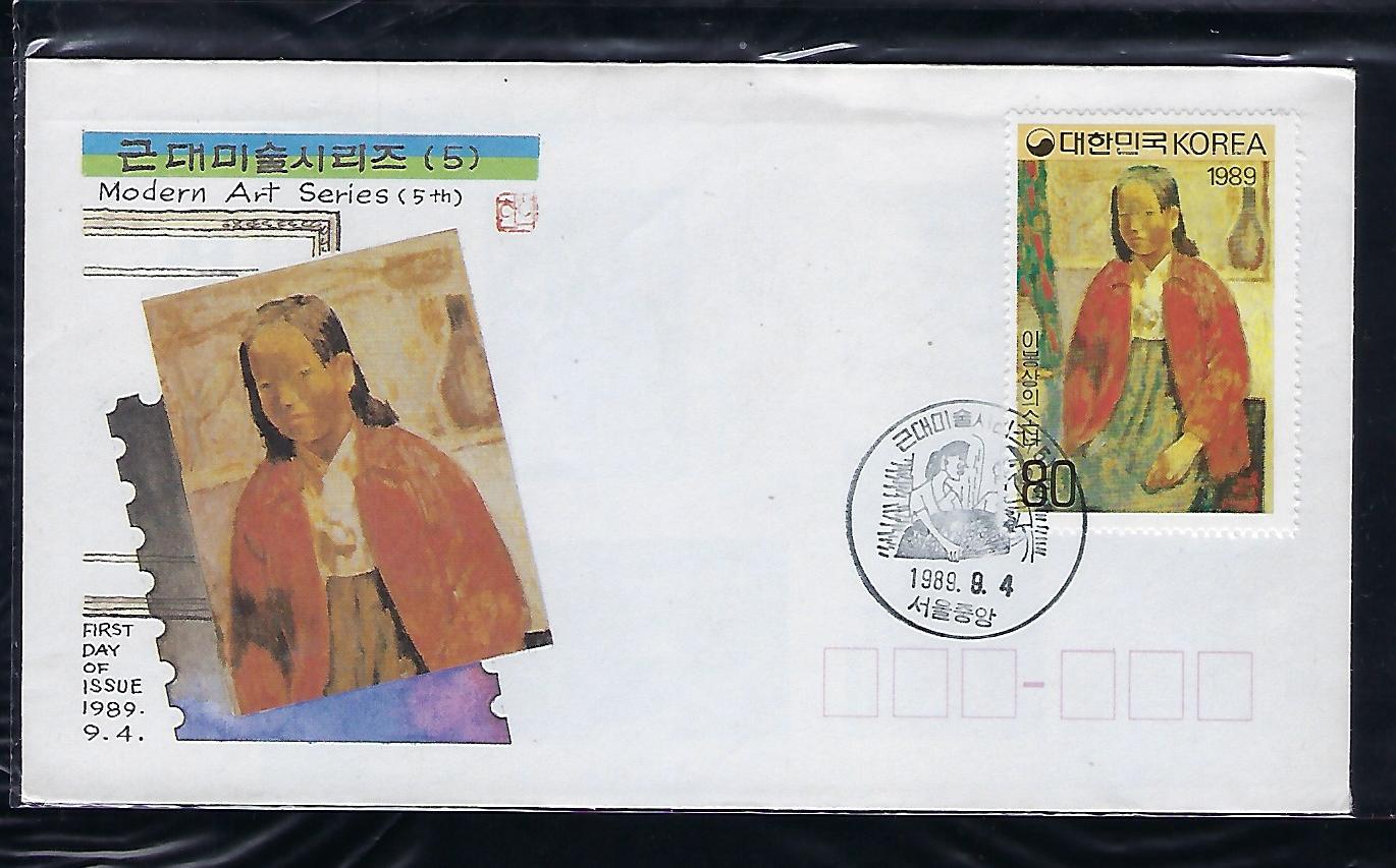 1989년 근대 미술 시리즈 제 5 집 안내 카드 포함 초일 봉투(FDC) 4완