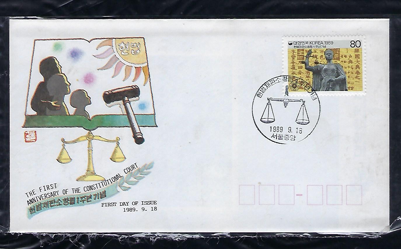 1989년 헌법 재판소 창립 1주년 안내 카드 포함 초일 봉투(FDC)