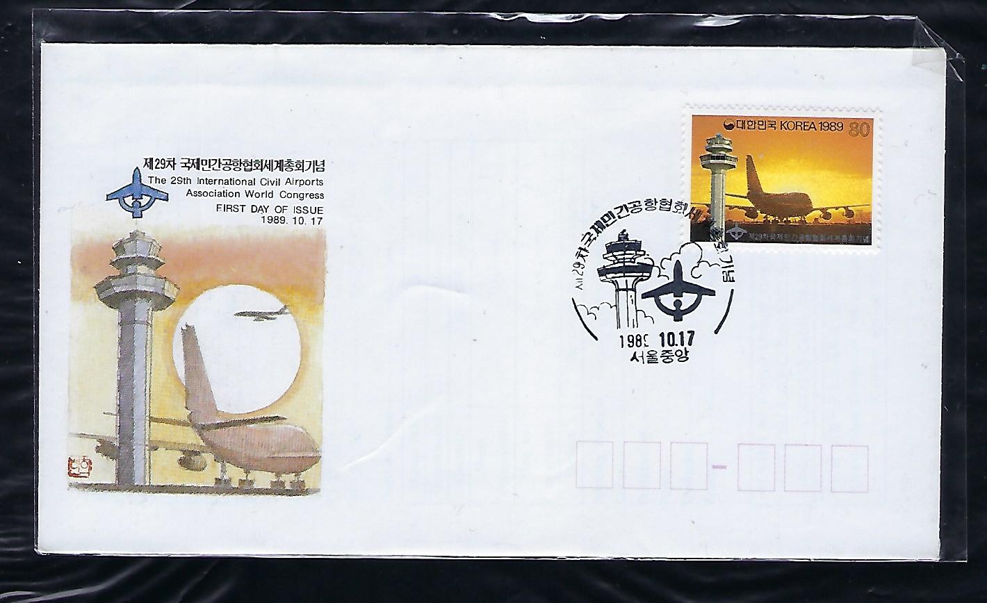 1989년 제29차 국제 민간 공항협회 세계총회 안내 카드 포함 초일 봉투(FDC)