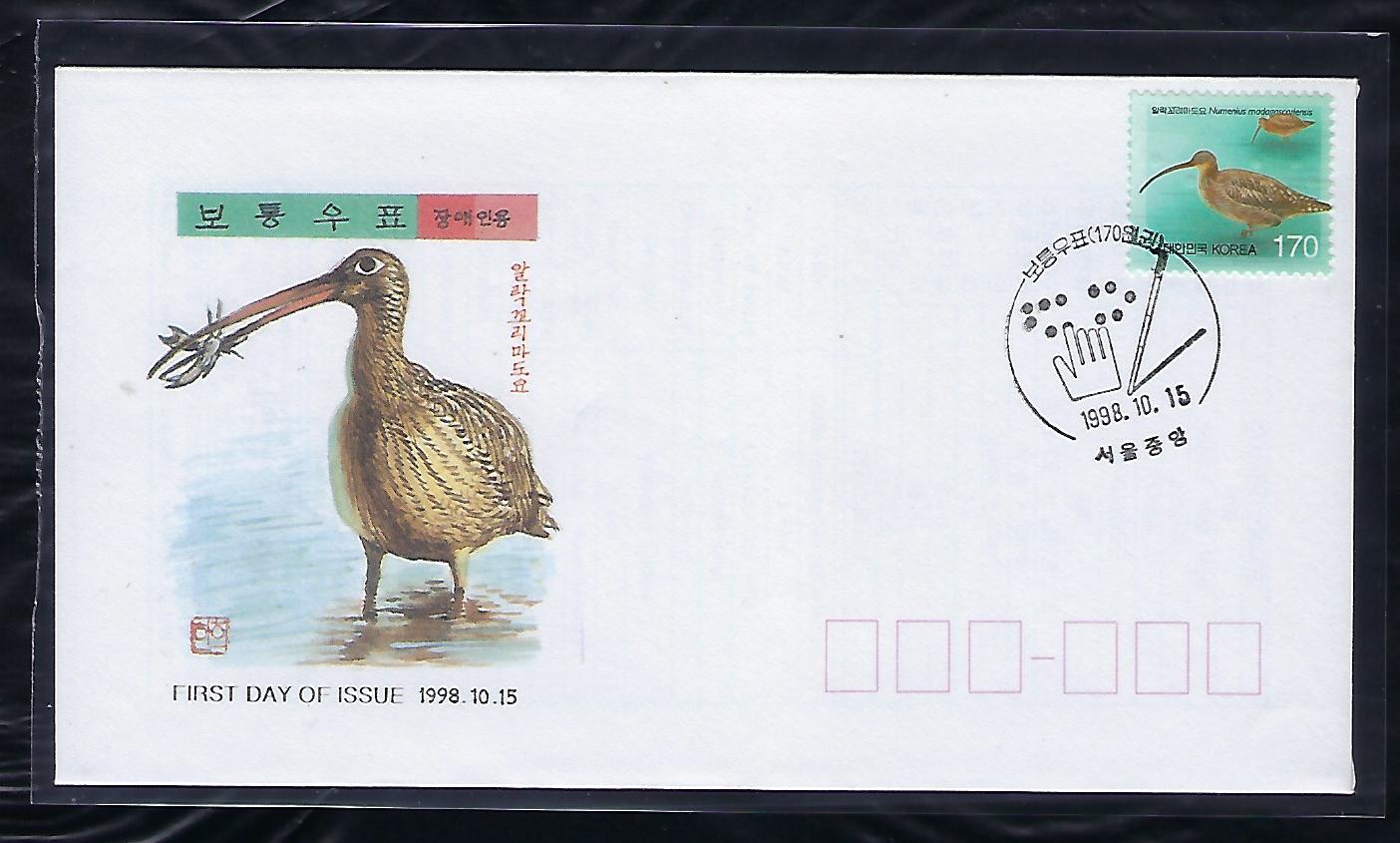 기본료 170원시기 보통 170원 안락꼬리마도요 점자우표 2장 초일봉투 ( F.D.C)