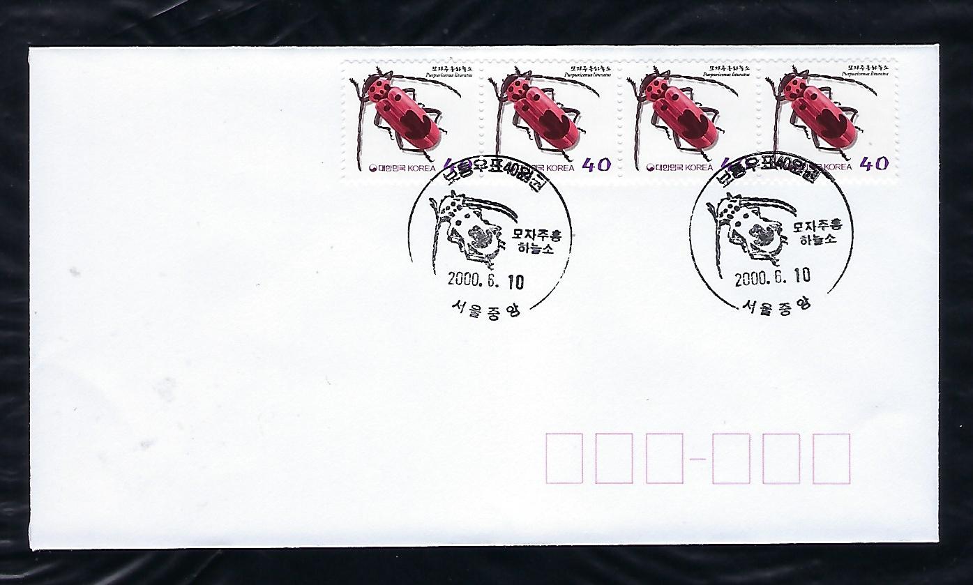 기본료 170원시기 보통 40원 모자주홍 하늘소 4장 안내 카드 포함 초일봉투 ( F.D.C)