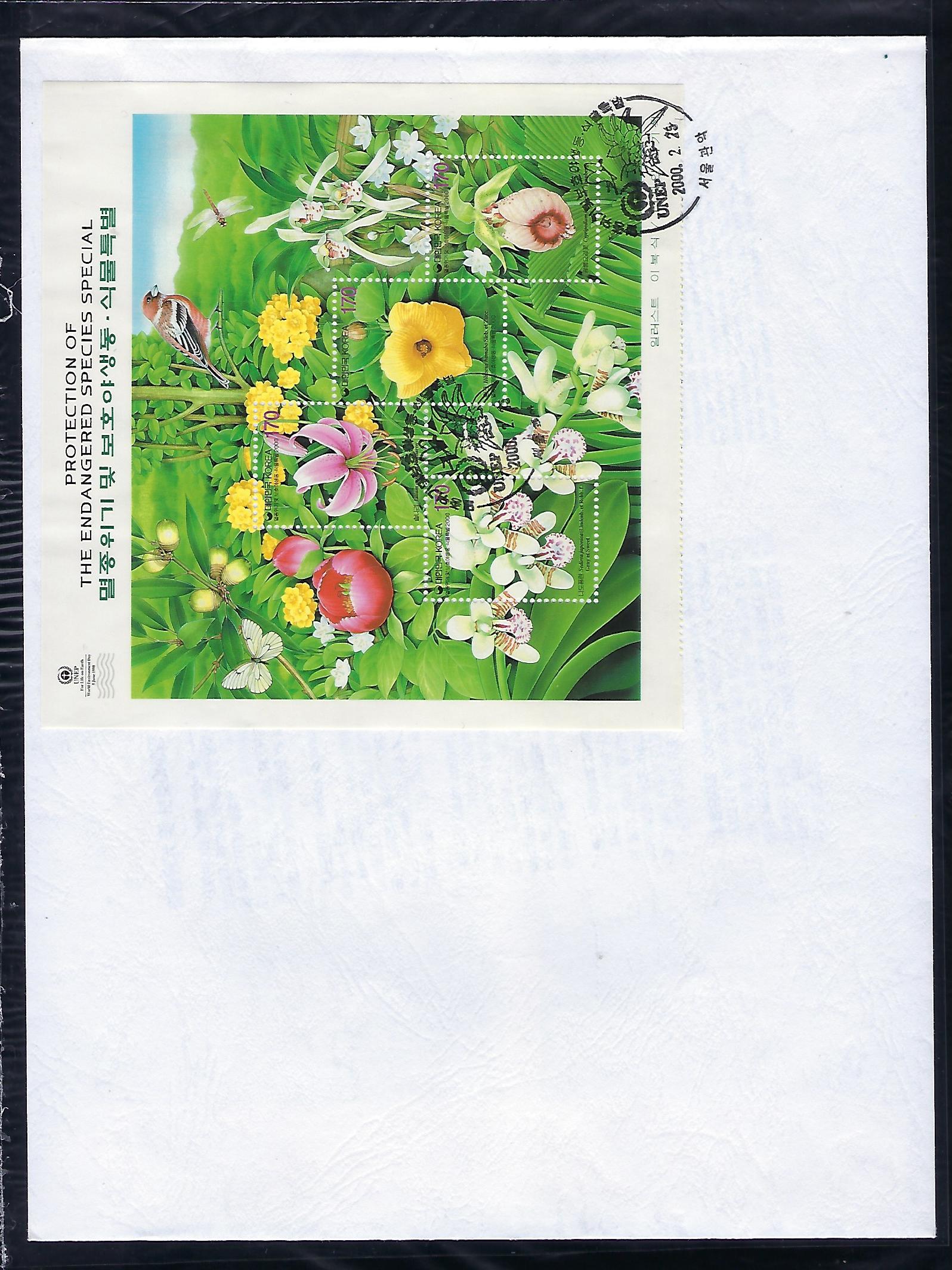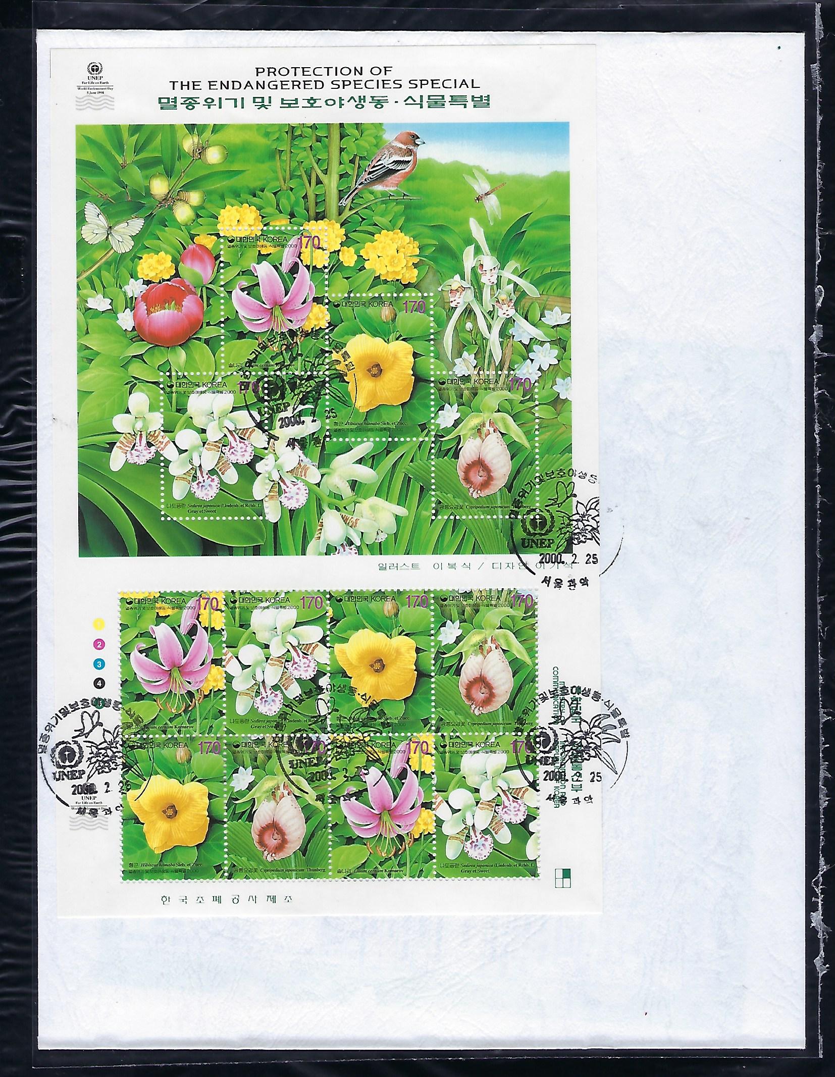 2000년 멸종위기 및 보호 야생 동-식물 전지 우표 안내 카드 포함 초일 봉투(FDC)