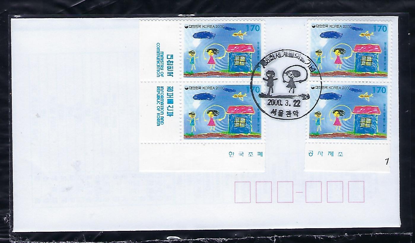 2000년 제8회 세계 물의 날 기념 4장 우표 안내 카드 포함 초일 봉투(FDC)