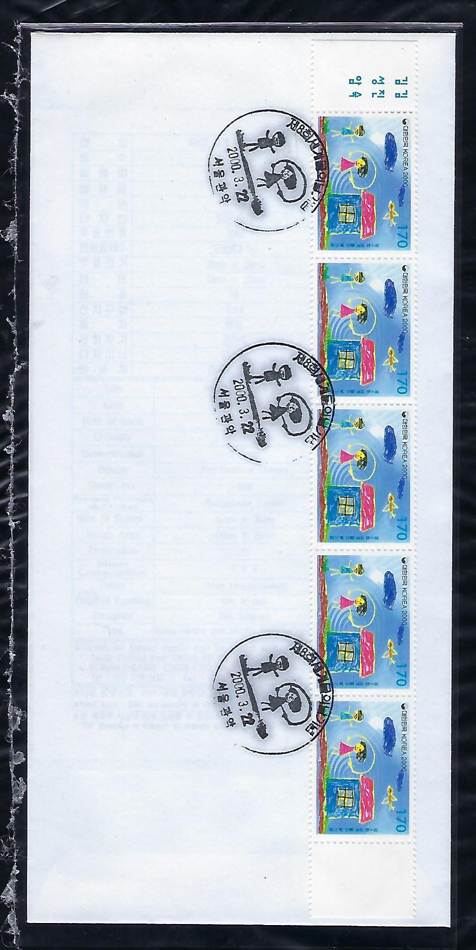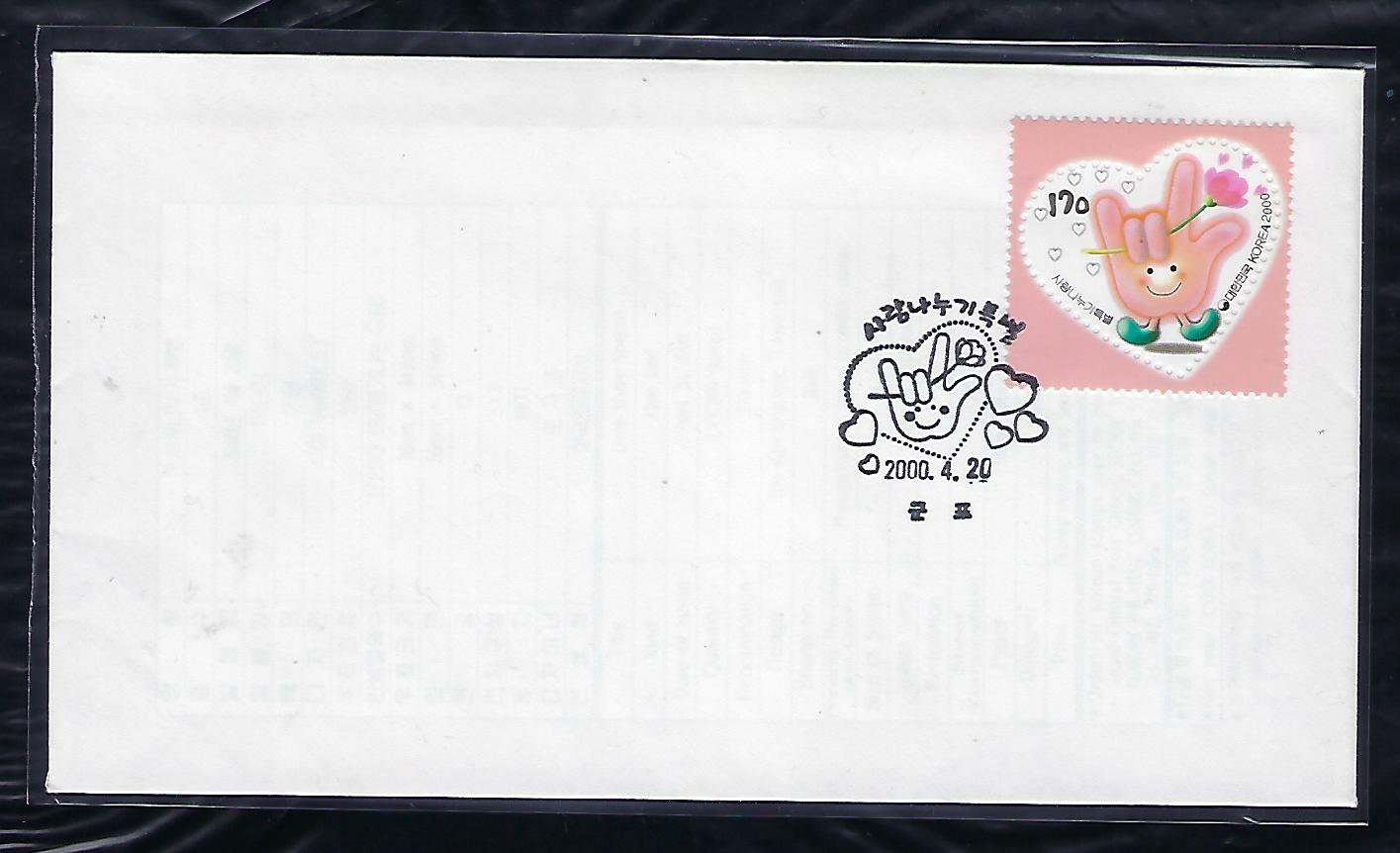 2000년 사랑나누기 기념 우표 안내 카드 포함 초일 봉투(FDC)