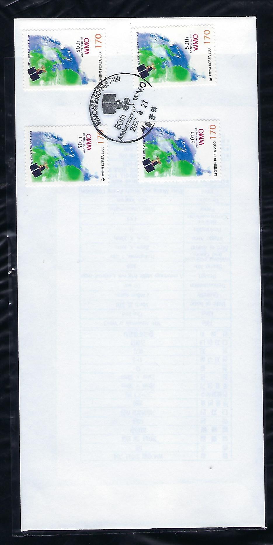 2000년 WMO 설립 50주년 기념 우표 안내 카드 포함 초일 봉투(FDC)