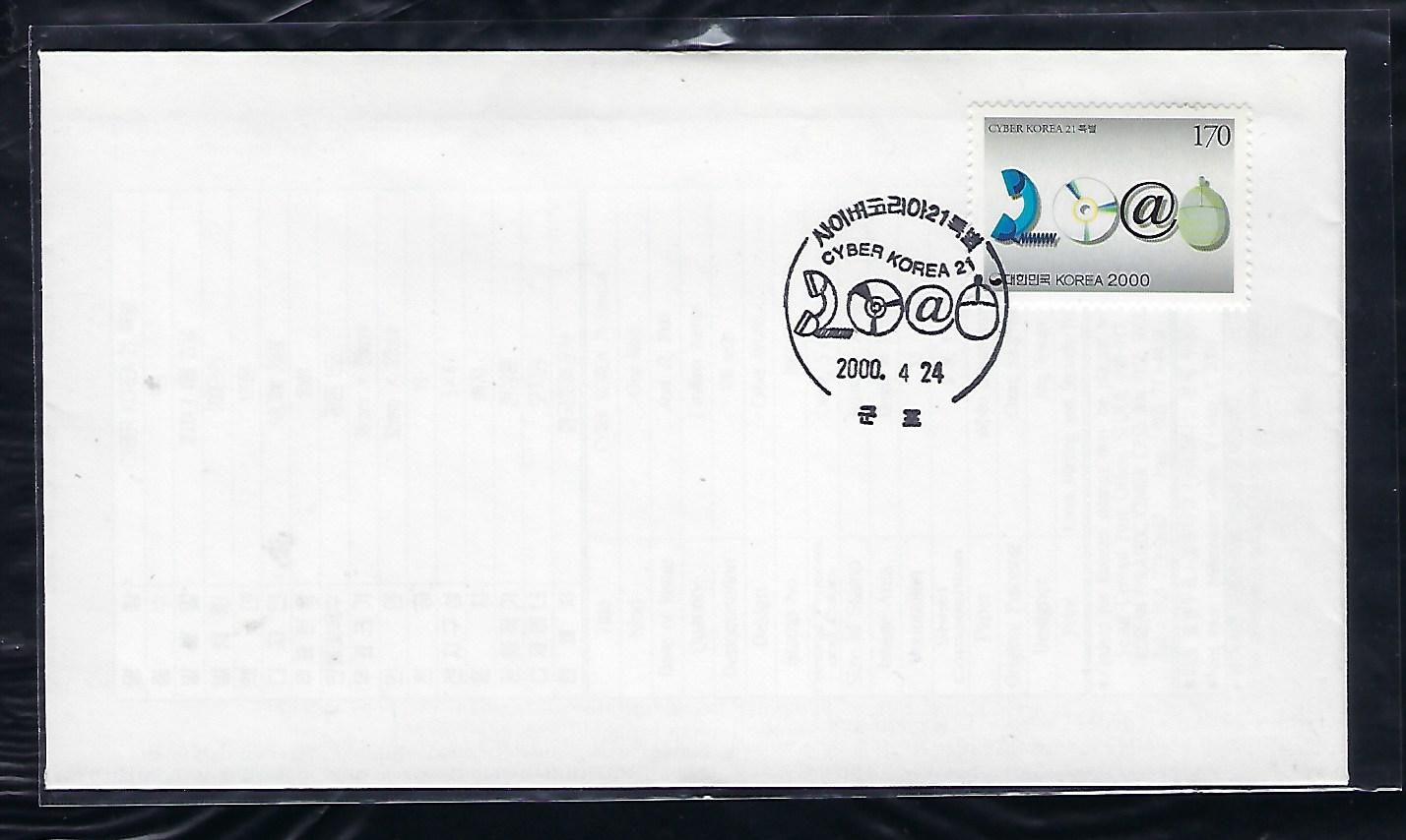 2000년 CYBER KOREA 21 특별 우표 안내 카드 포함 초일 봉투(FDC)