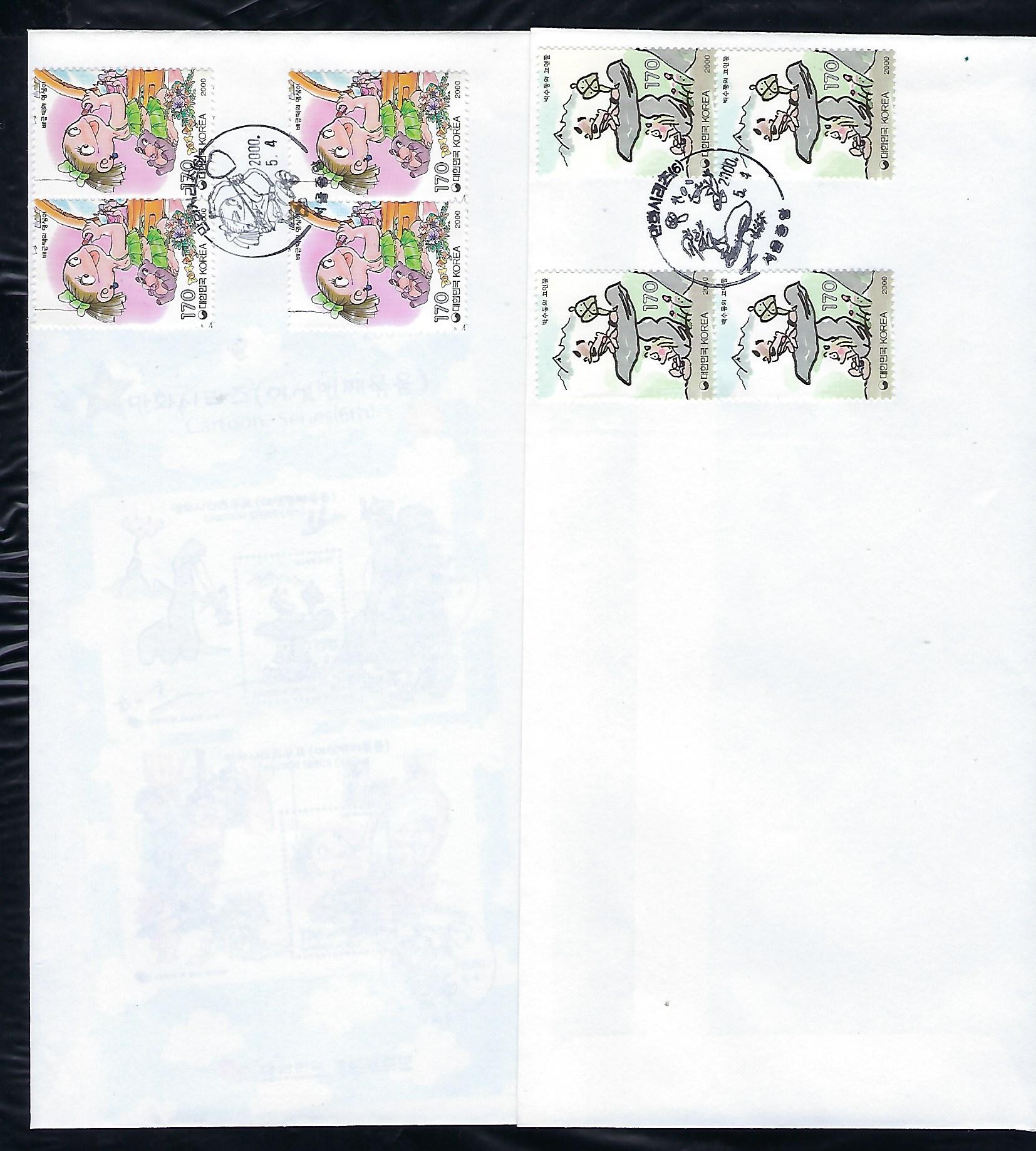 2000년 만화시리즈 (6집) 우표 4장 안내 카드 포함 초일 봉투(FDC) 2완