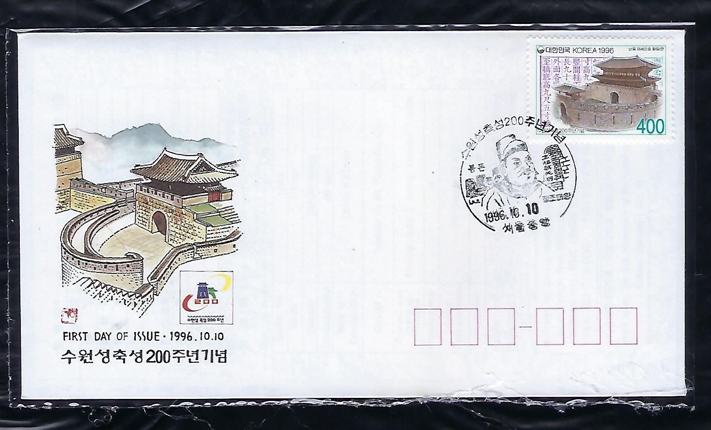 1996년 수원성 축성 200주년 우표 안내 카드 초함 초일 봉투(FDC)