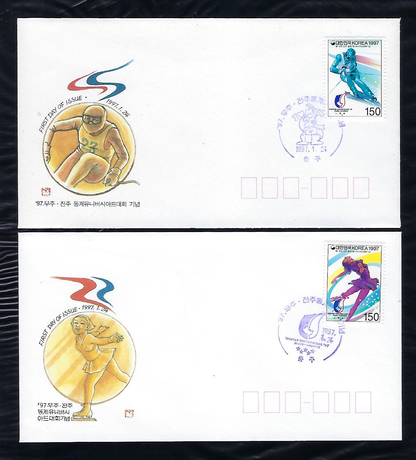 1997년 `97 무주-전주 동계유니버시아드 대회 우표 초일 봉투(FDC) 2완