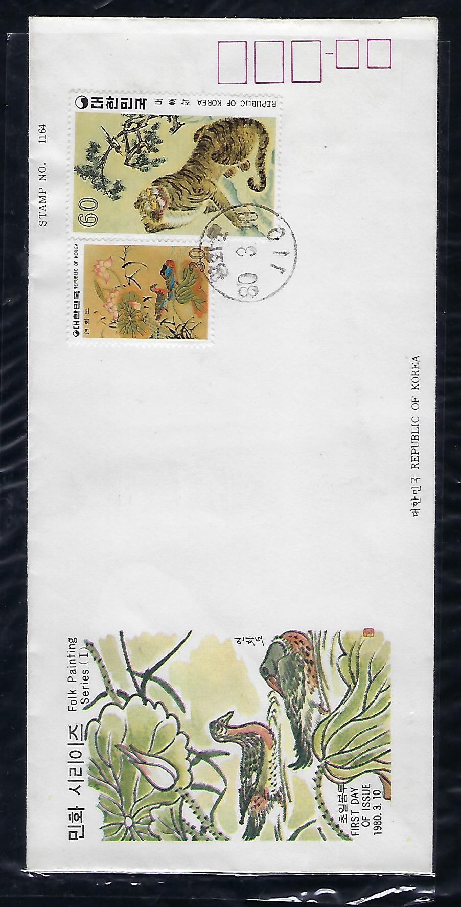 > 전체카테고리 > 한국우표 1980년 민화 시리즈 1집 2완 초일봉투 (FDC)로 상태는 사진과 같이 아주 좋습니다.