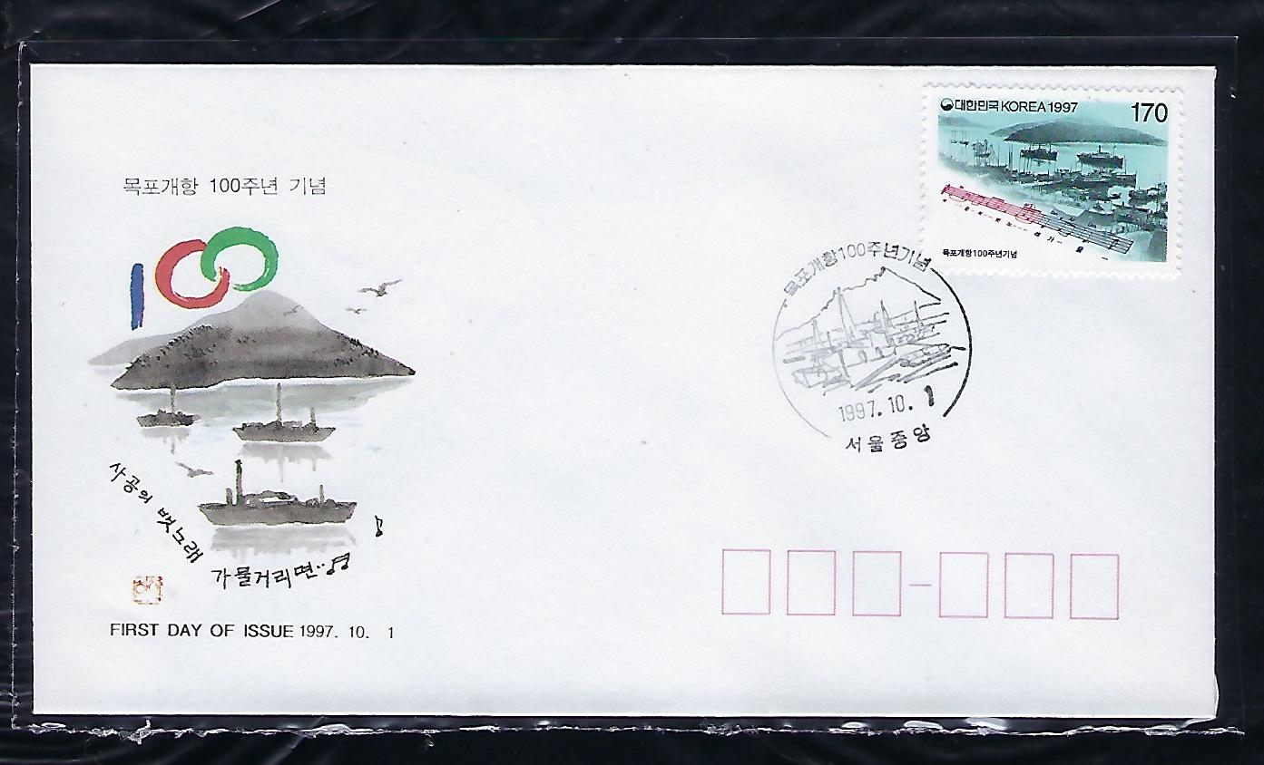 1997년 목포개항 100주년 우표 초일 봉투(FDC) 로  상태는 사진과 같이 아주 좋습니다.