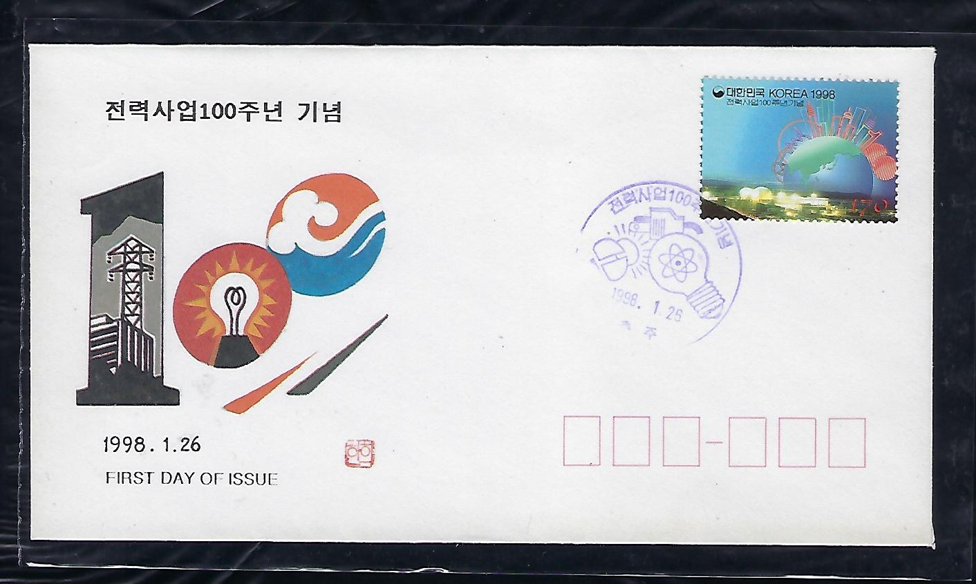 1998년  전력사업 100주년 우표 초일 봉투(FDC)로  상태는 사진과 같이 아주 좋습니다.