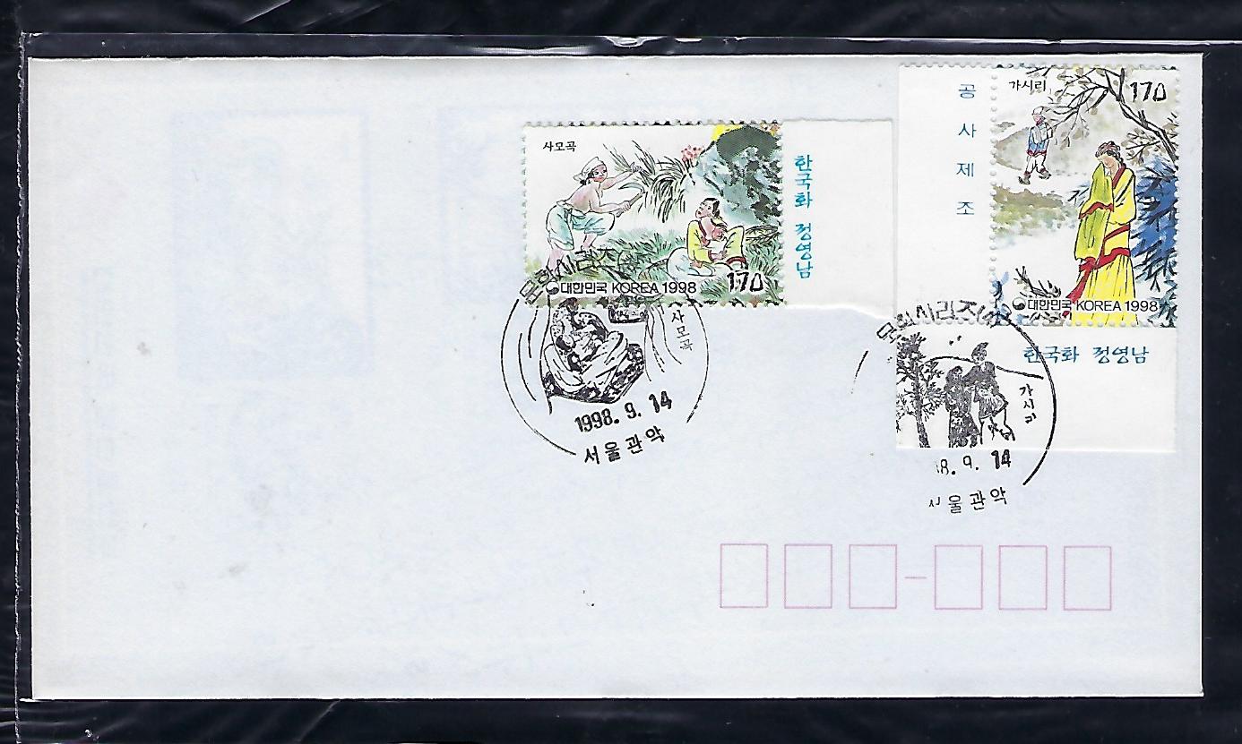 > 전체카테고리 > 한국우표 1998년 문학 시리즈 (제4집) 우표 2완 초일 봉투(FDC) 으로 상태는 사진과 같이 아주 좋습니다.