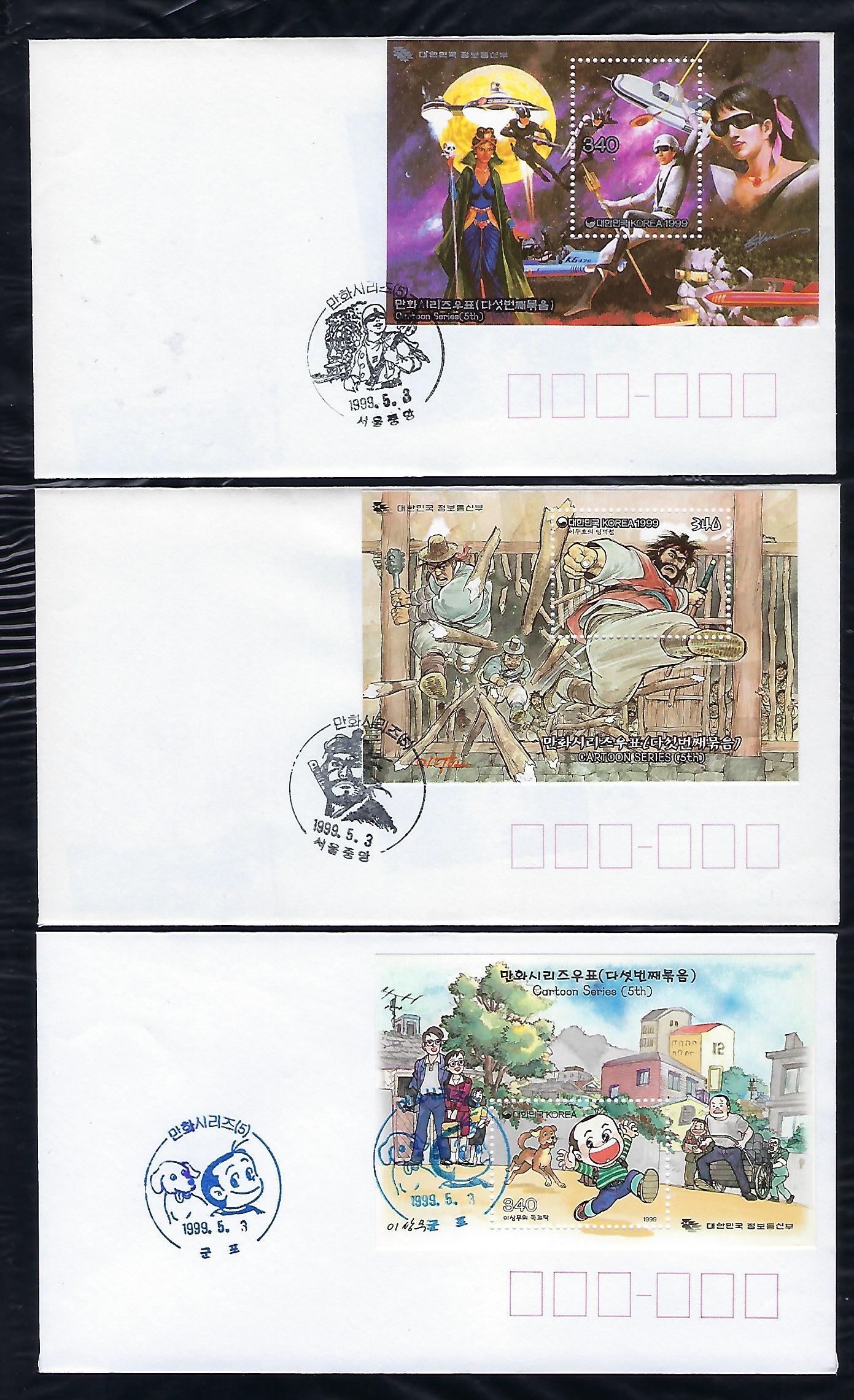 1999년 만화 시리즈 (제5집) 시트 우표 안내 카드 포함 초일 봉투(FDC) 3완