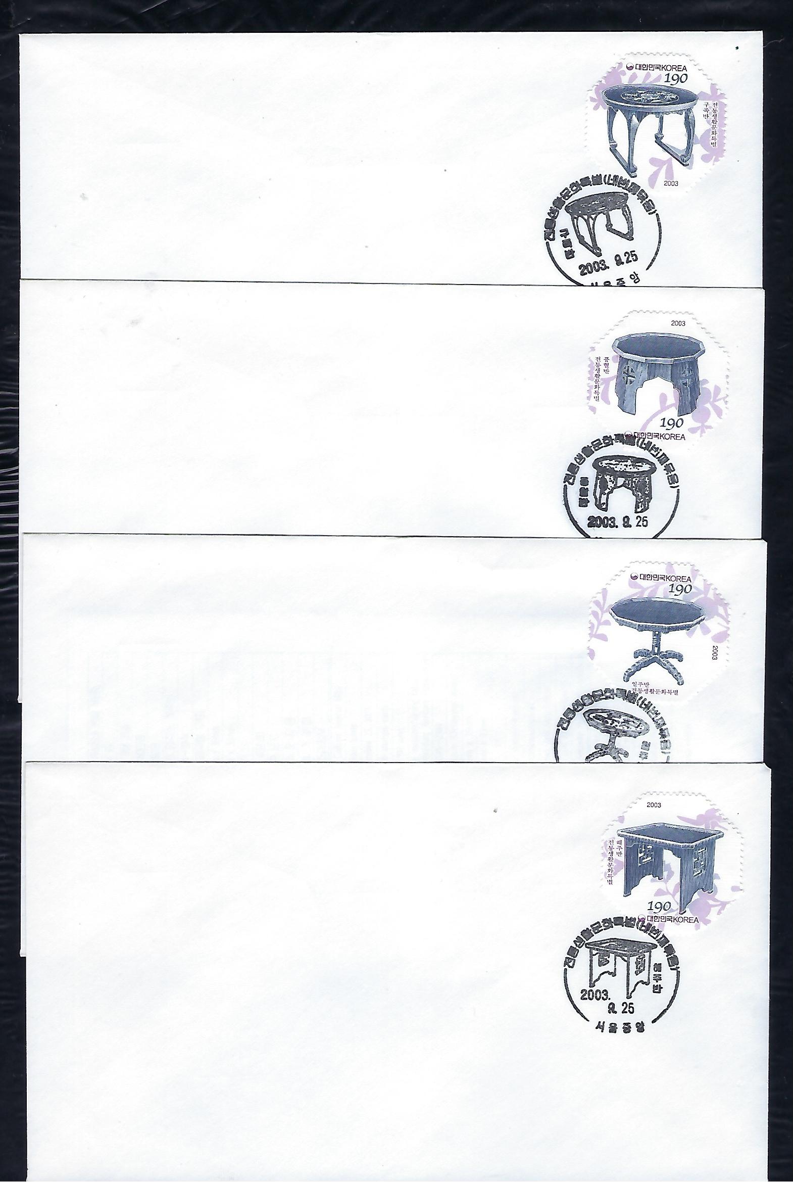 2003년 전통 생활문화 네번째 묶음 우표 4연쇄 초일 봉투(FDC) 4완
