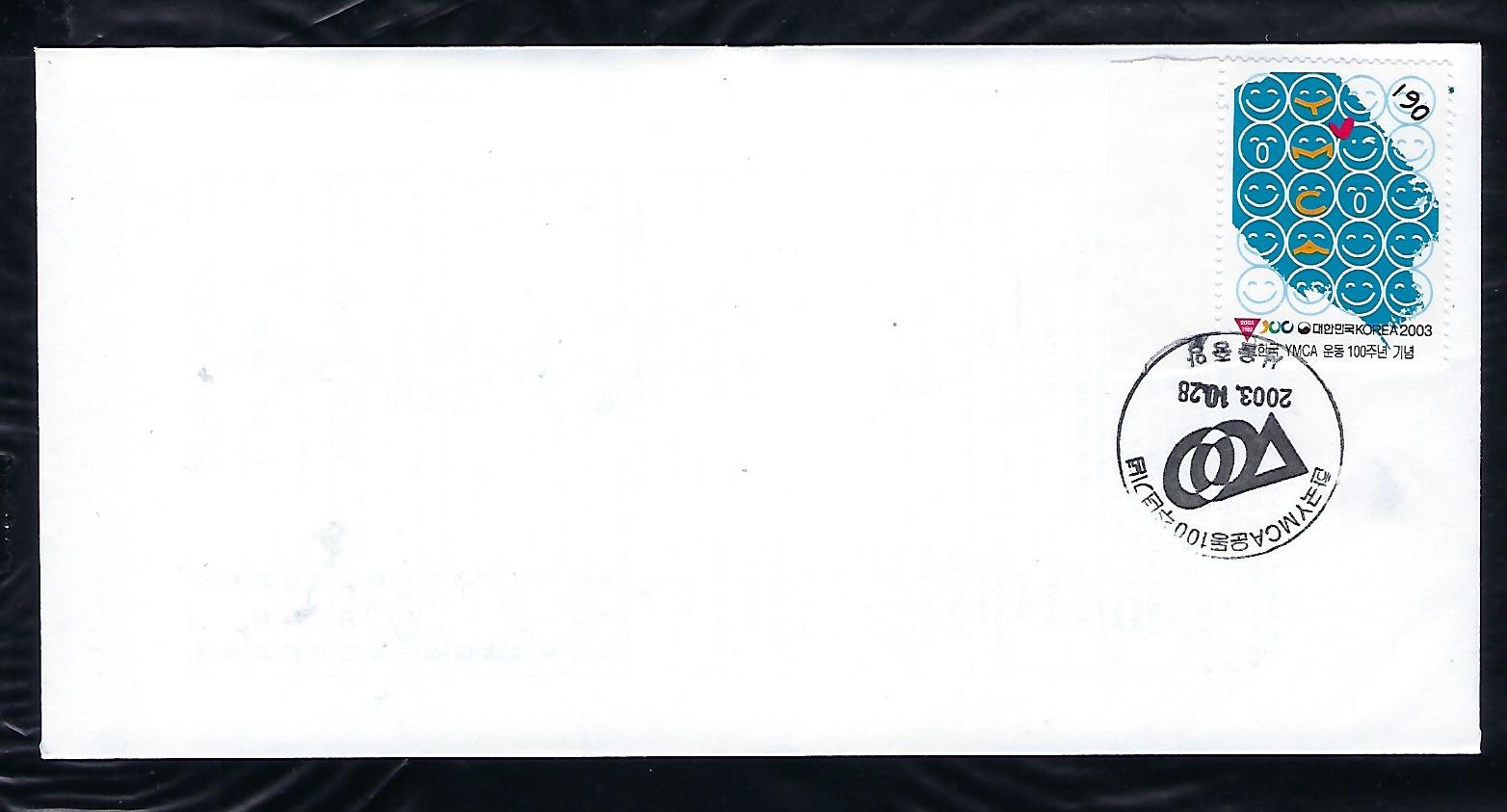 2003년 한국 YMCA 운동 100주년 기념 우표 안내 카드 포함 초일 봉투(FDC)