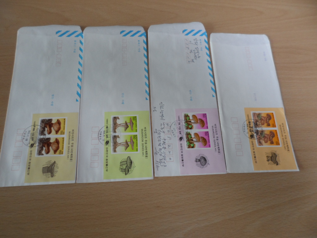 > 전체카테고리 > 한국우표 1996년 버섯 시리즈 (제4집) 시트 초일 봉투(FDC) 4완으로 상태는 사진과 한 장은 실체봉피입니다.