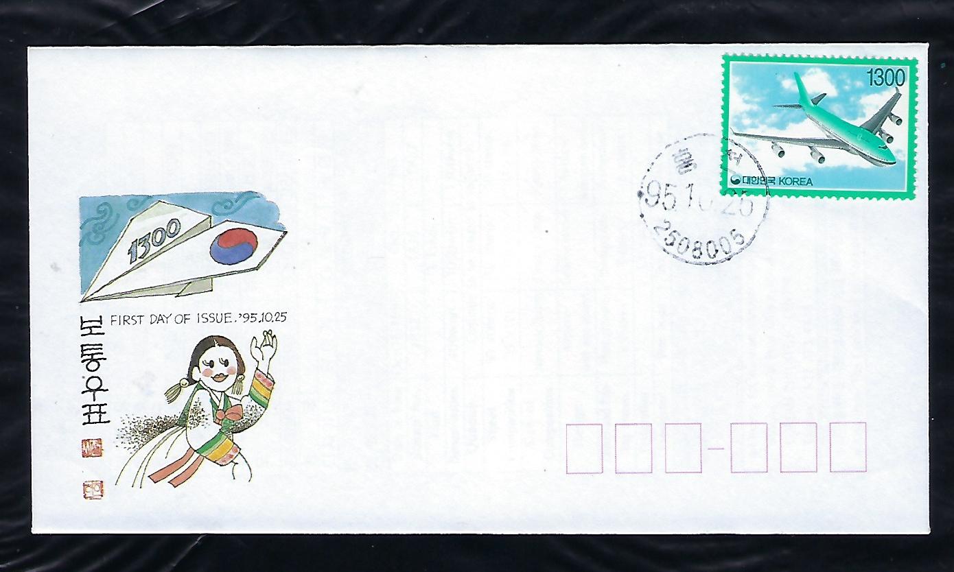 기본료 150원시기 보통 1300원 비행기 초일봉투 ( F.D.C)