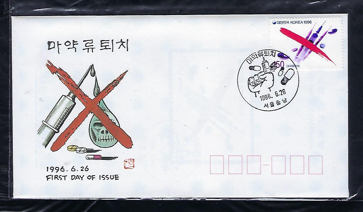 1996년 마약류 퇴치 특별 우표 안내 카드 포함 초일 봉투(FDC)