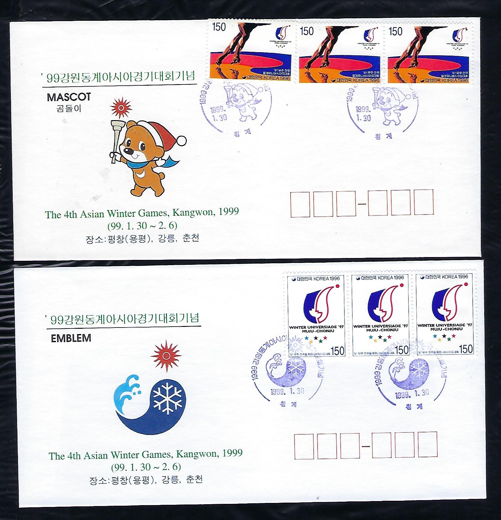 1996년 `97 무주 전주 동계유니버시아드 대회 우표 3장 초일 봉투(FDC) 2완