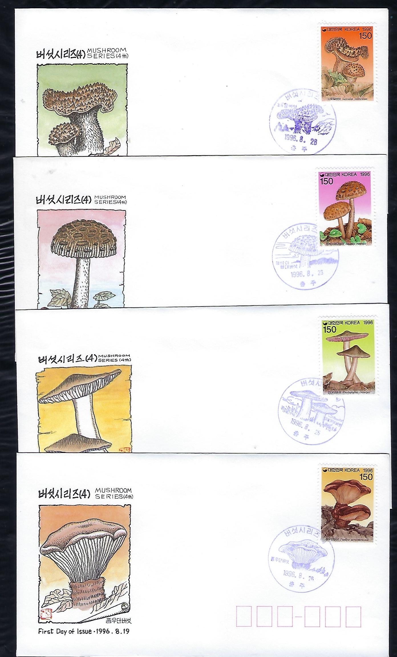 1996년 버섯 시리즈 제4집 우표 초일 봉투(FDC) 4완