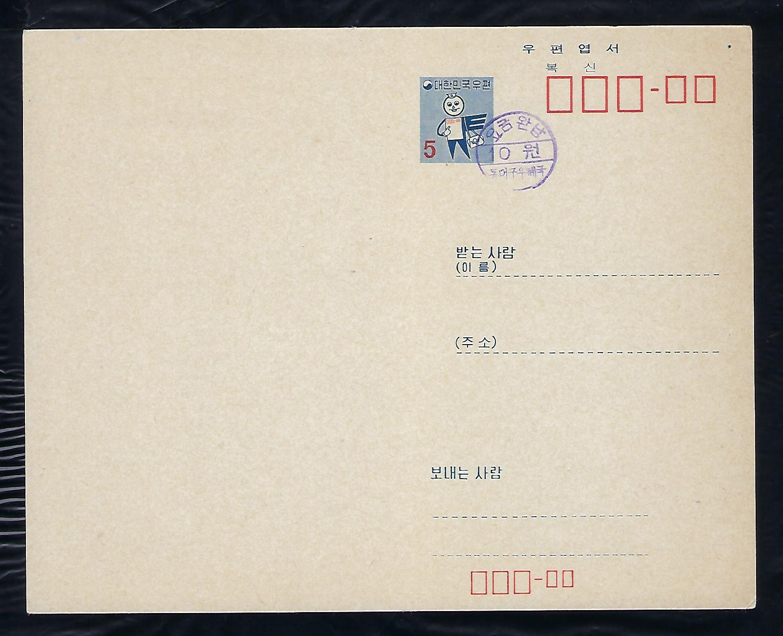 1972년 12월1일 10원(5원+5원) 우편도령 왕복 엽서 요금완납 소인 엽서입니다.