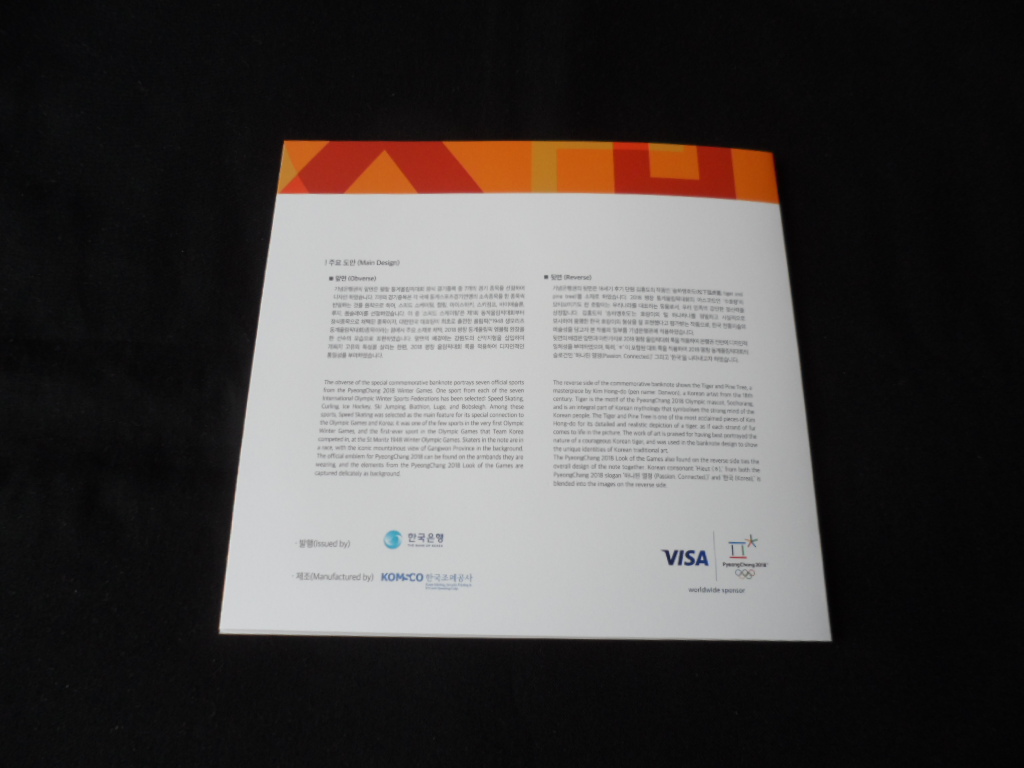 "2018 평창 동계올림픽대회 기념지폐은행권"으로 2매 연결형 지폐와