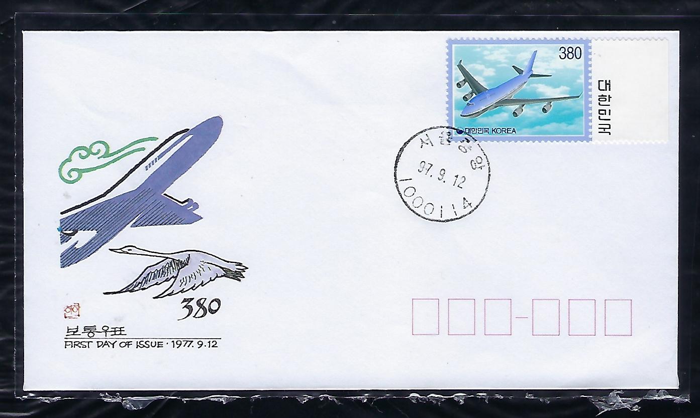 기본료 170원시기 보통 380원 비행기 초일봉투 ( F.D.C)