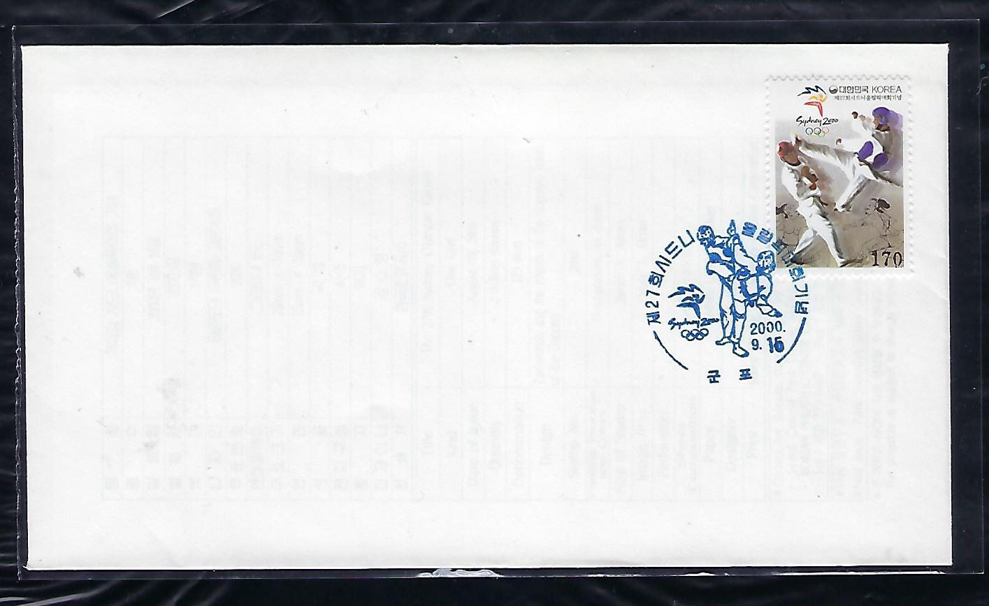 2000년 제 27회 시드니 오림픽 대회 우표 안내 카드 포함 초일 봉투(FDC)