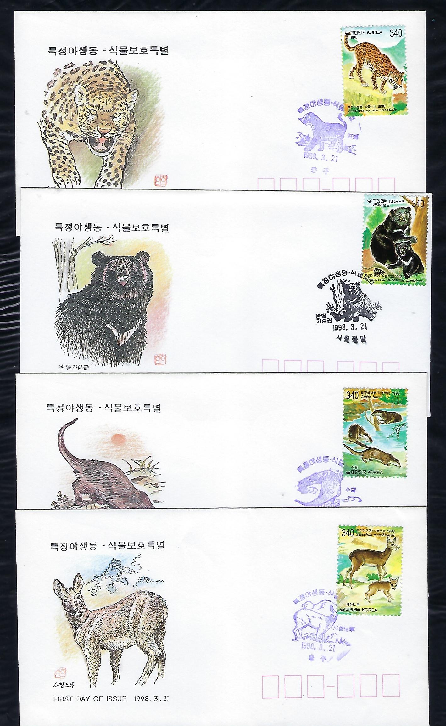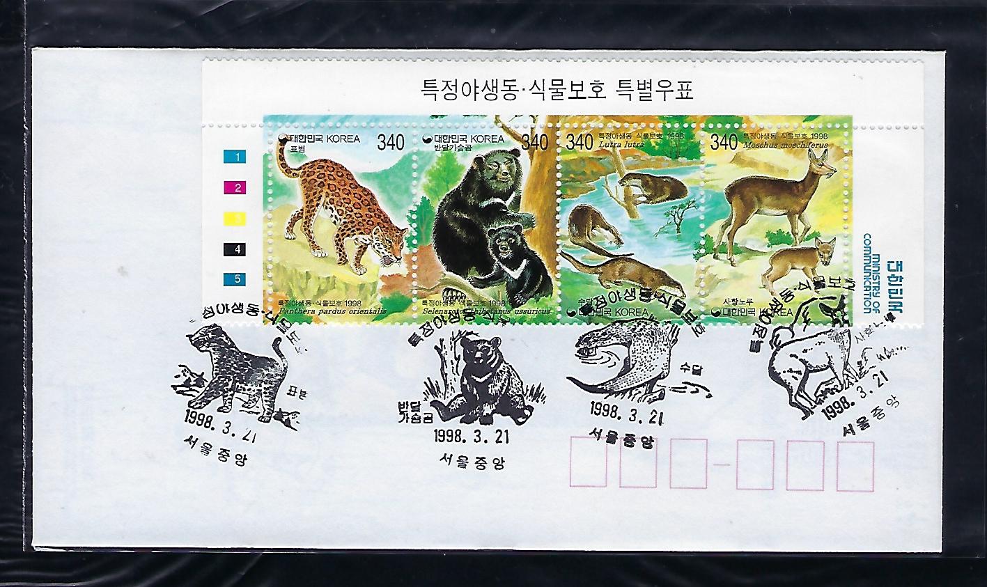 1998년 특정 야생동-식물 보호특별 (제5집) 4종연쇄 우표 초일 봉투(FDC)