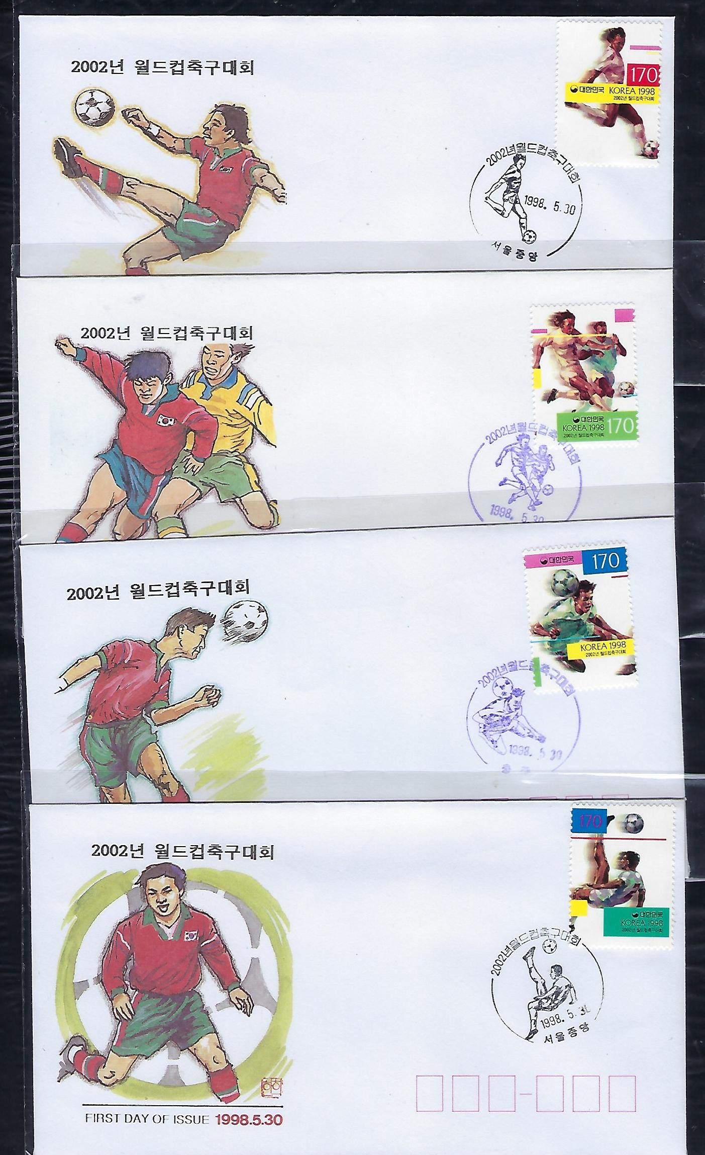 1998년 2002월드컵 축구대회 4연쇄 우표 초일 봉투(FDC) 4완