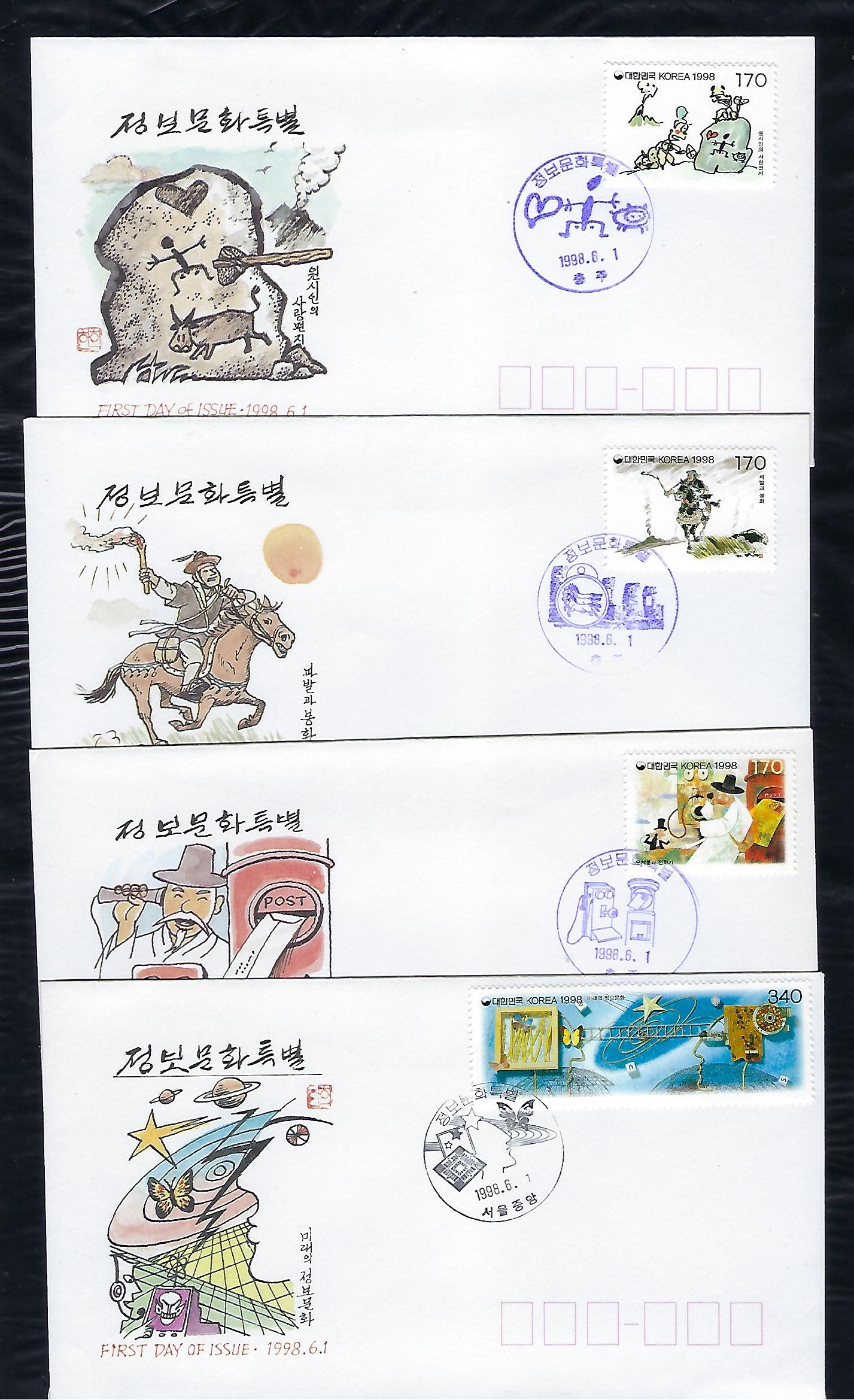 1998년 정보문화 특별 4연쇄 우표 초일 봉투(FDC) 4완