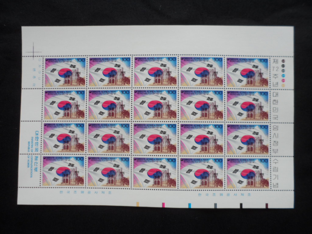 91년 제72주년 대한민국 임시정부수립 우표 전지