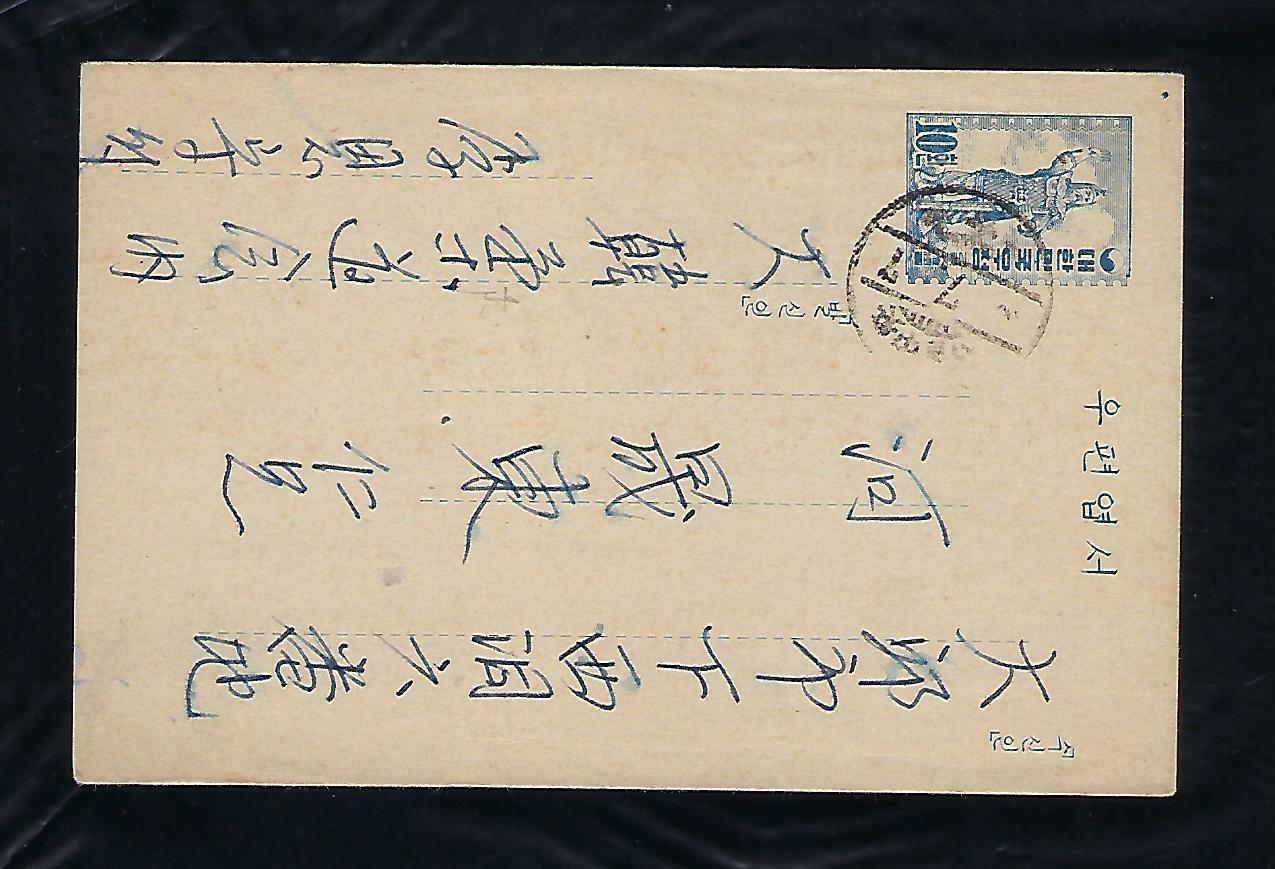 10환 마패 엽서에 10환 남재문 우표첨부 엽서 실체