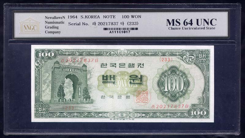 한국은행 나100 원권 경회루 1964년 제233판 MS 64 UNC