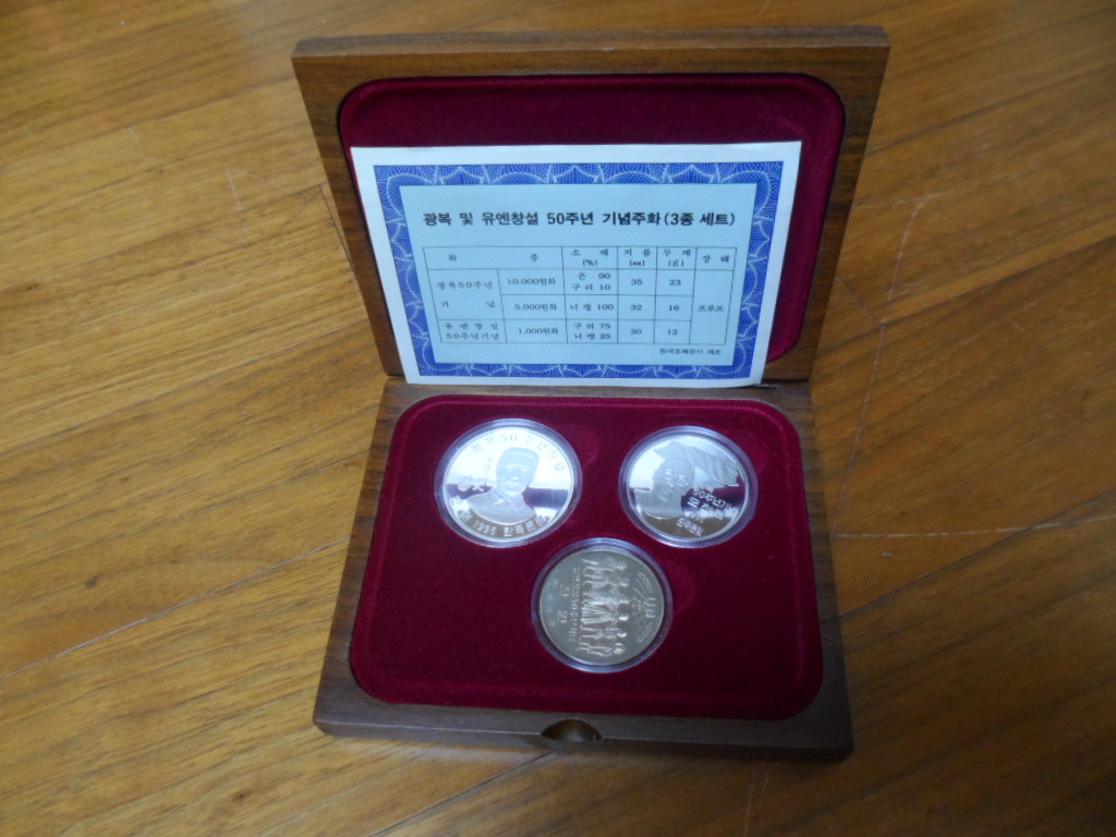 광복50주년기념주화 프루프화 2종과 유엔창설 50주년 기념주화 프루프 3종 set